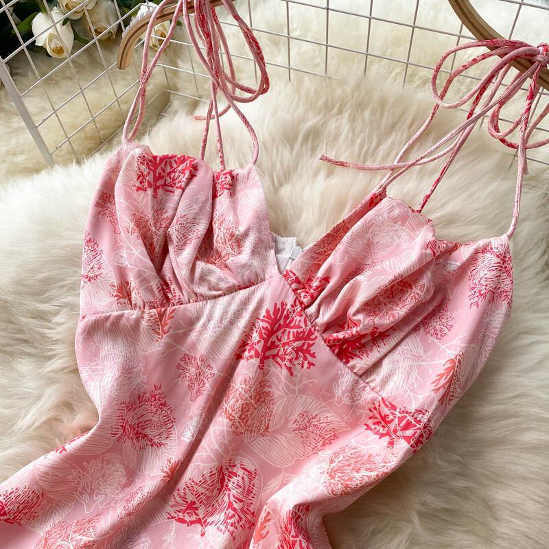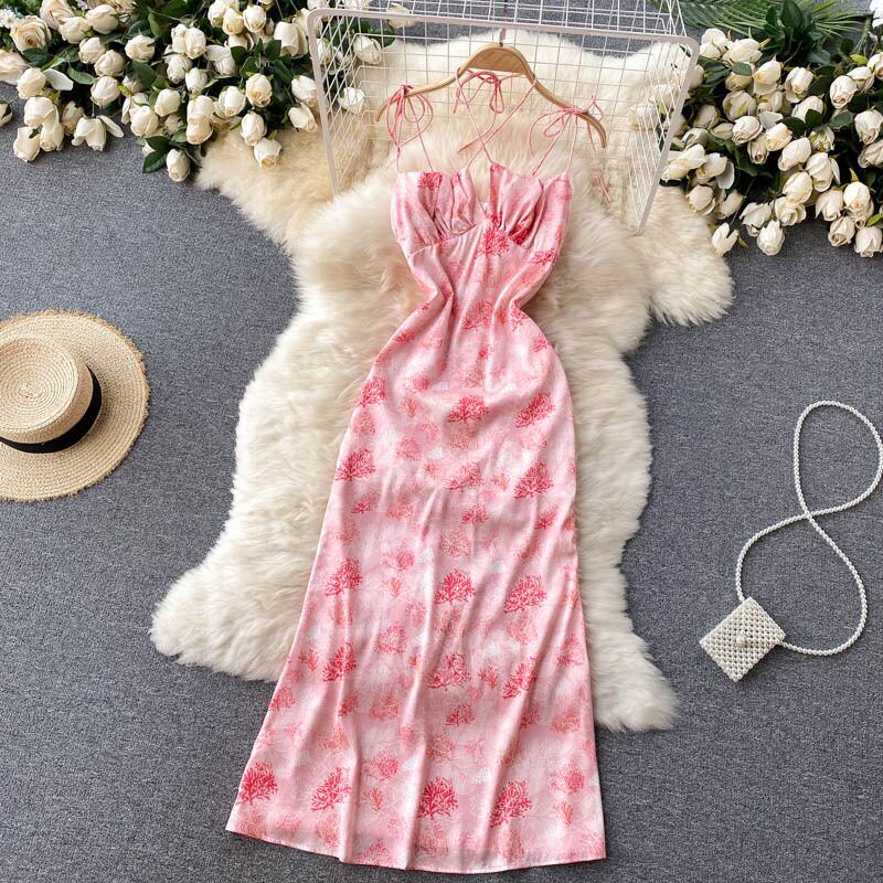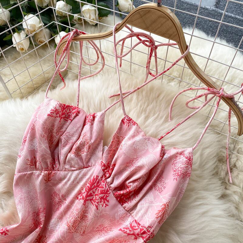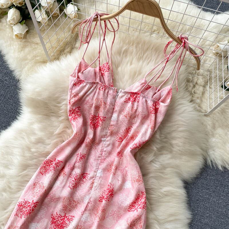 Feminine Dress 2021 Summer Dress Goddess Fan Xinji Hanging Neck Sling Slim Fit Mid-Length Vacation Skirt サマー 夏物 スカート スリム lyxaj70664927315