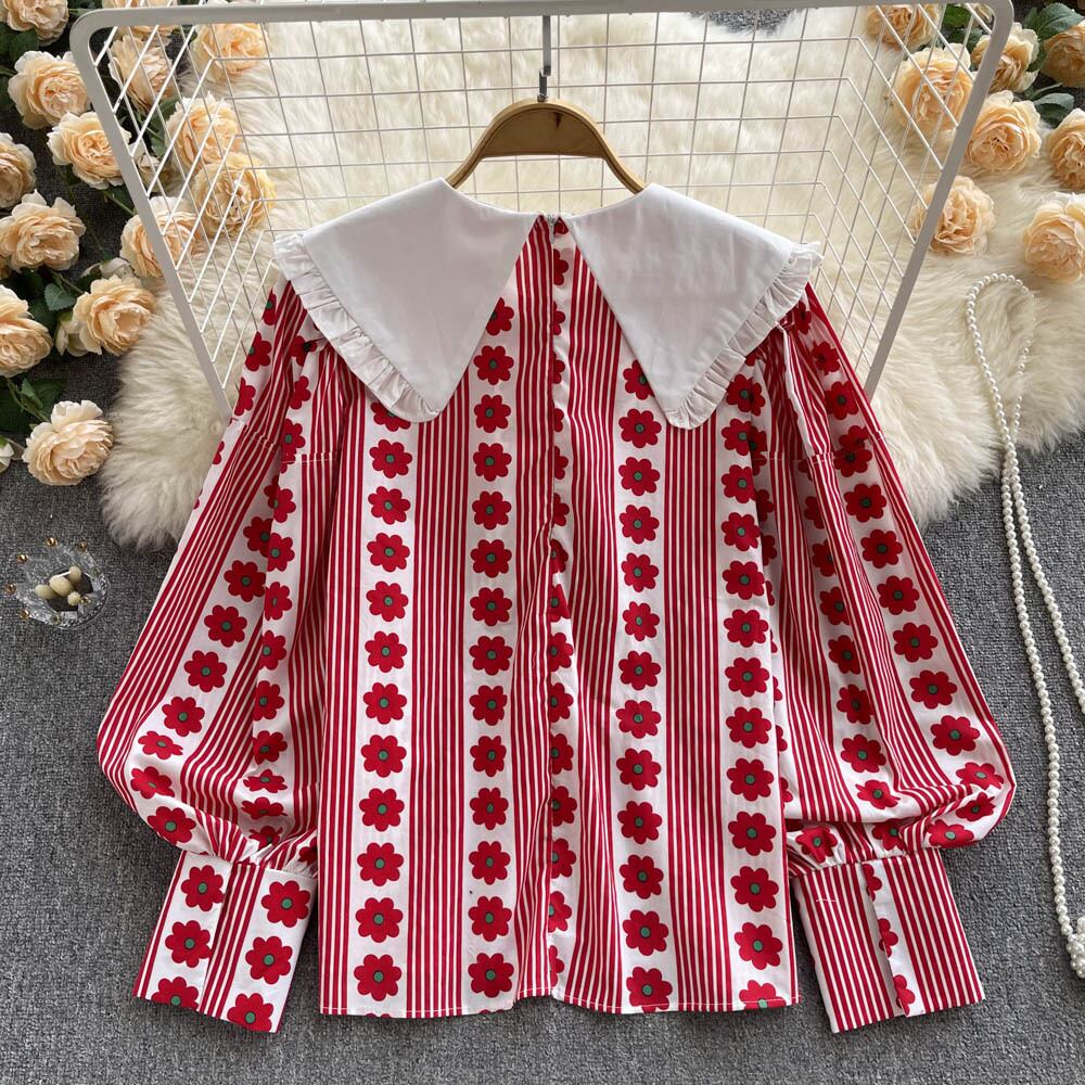 Spring French Doll Collar Floral Long Sleeve Shirt Women's Loose and Slim Versatile Minority Western Style Chic Top ロング 長袖 スプリング 春物 花柄 スリム lyxaj96807006432
