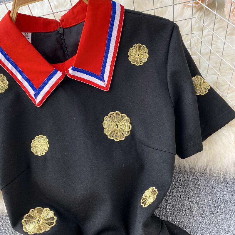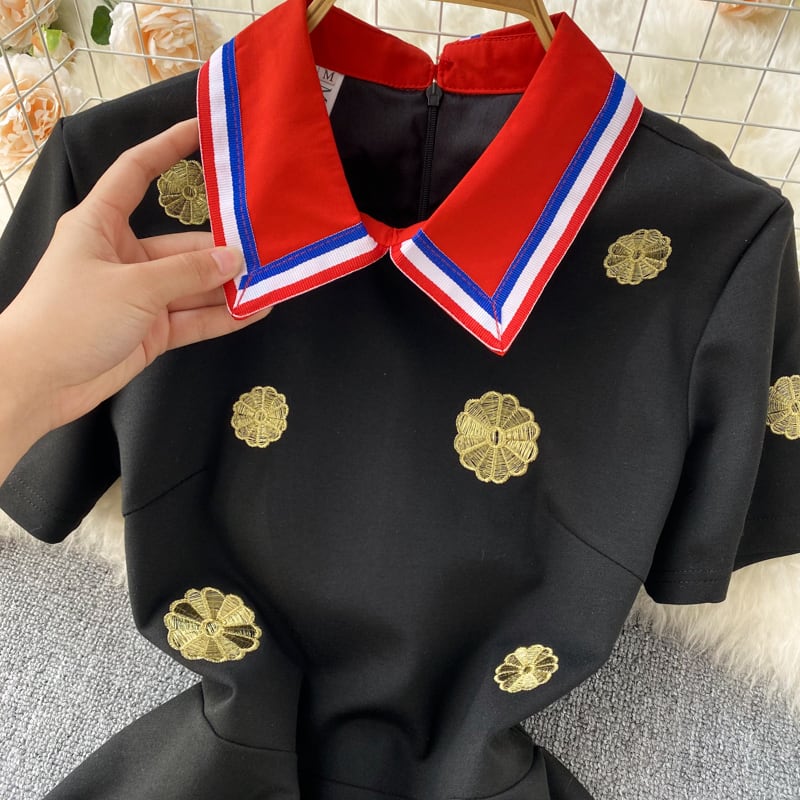 2022 summer new design sense niche doll collar French retro gold thread embroidery flower dress princess dress レトロ 刺繍 サマー 夏物 フラワーデザイン lyxaj51545278642