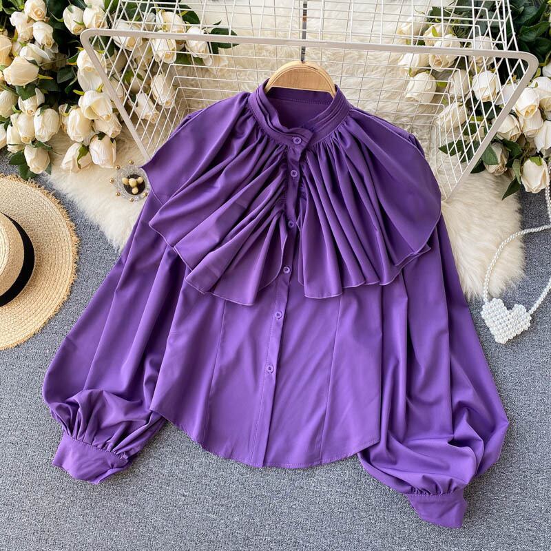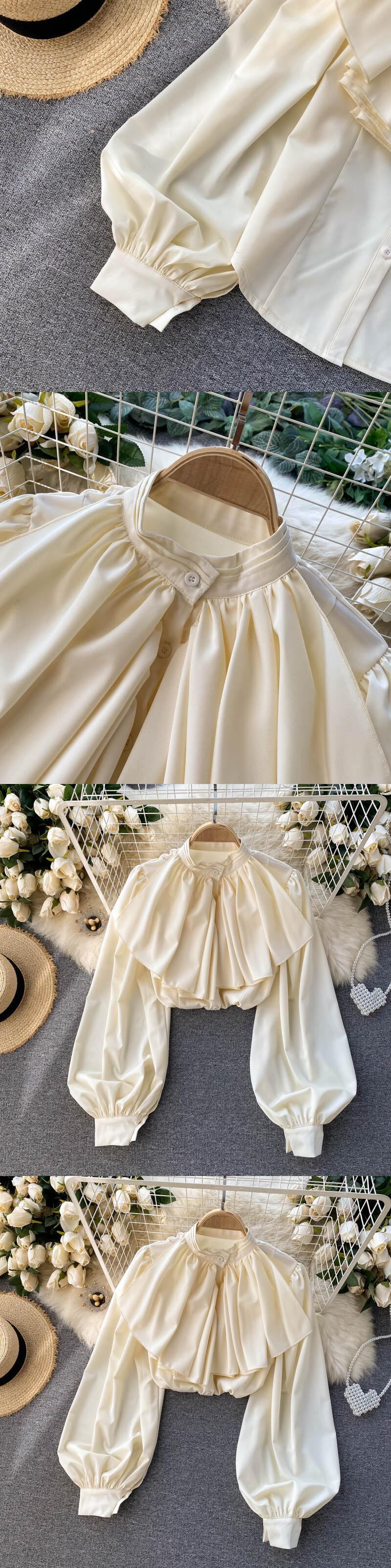 French retro palace style top women's round neck puff sleeves pleated loose and thin all-match niche design top レトロ レース プリーツ Oネック lyxaj2178141301