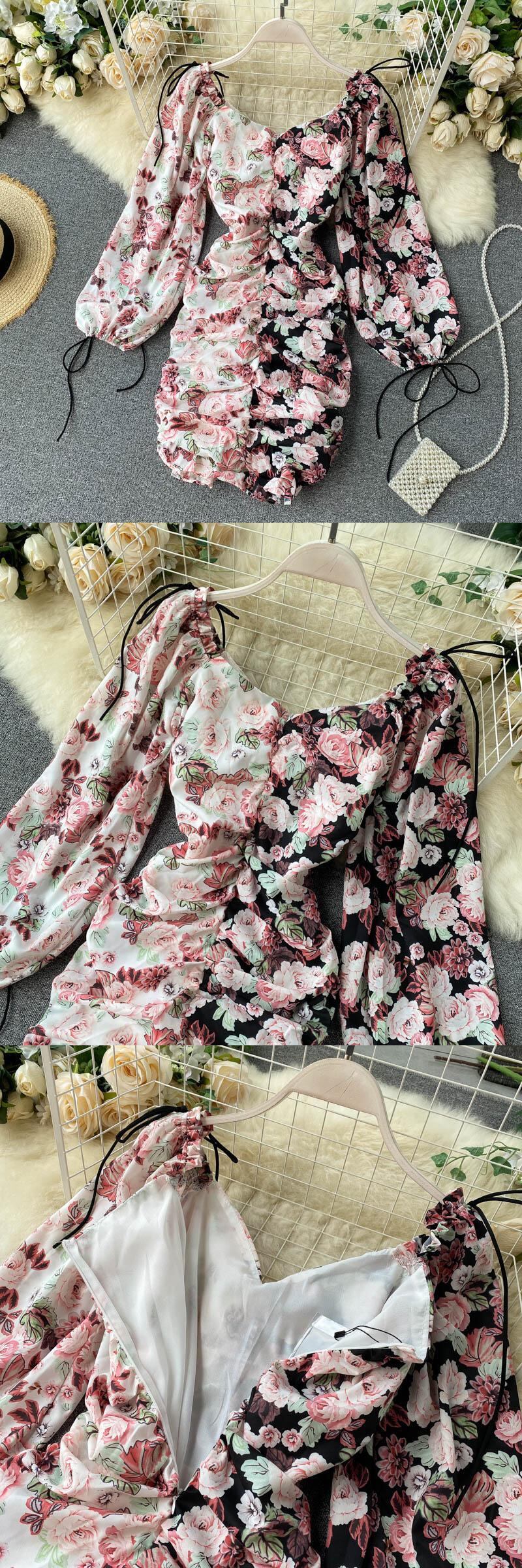 European and American ins design sense colorblock print dress 2020 new female scheming pleated sexy hip skirt プリーツ スカート ヨーロピアン lyxaj47875295090