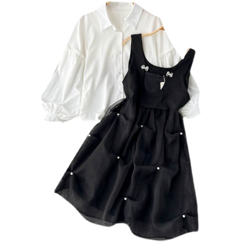 Spring new fried street retro chic suit female fashion small long-sleeved shirt pleated suspender skirt two-piece set ロング レトロ ストリート プリーツ スプリング 春物 スカート lyxaj4356262796