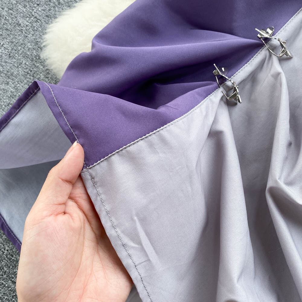 2022 spring new design sense of niche French chic heavy industry printing gradient contrast color large swing long-sleeved dress ロング スプリング 春物 lyxaj83237852471