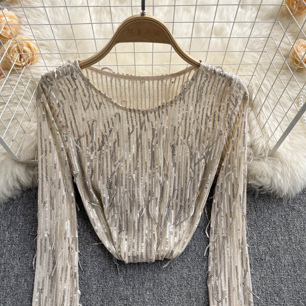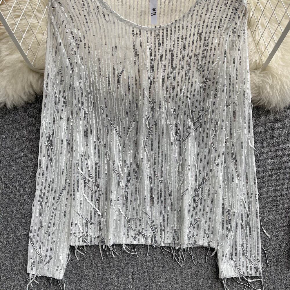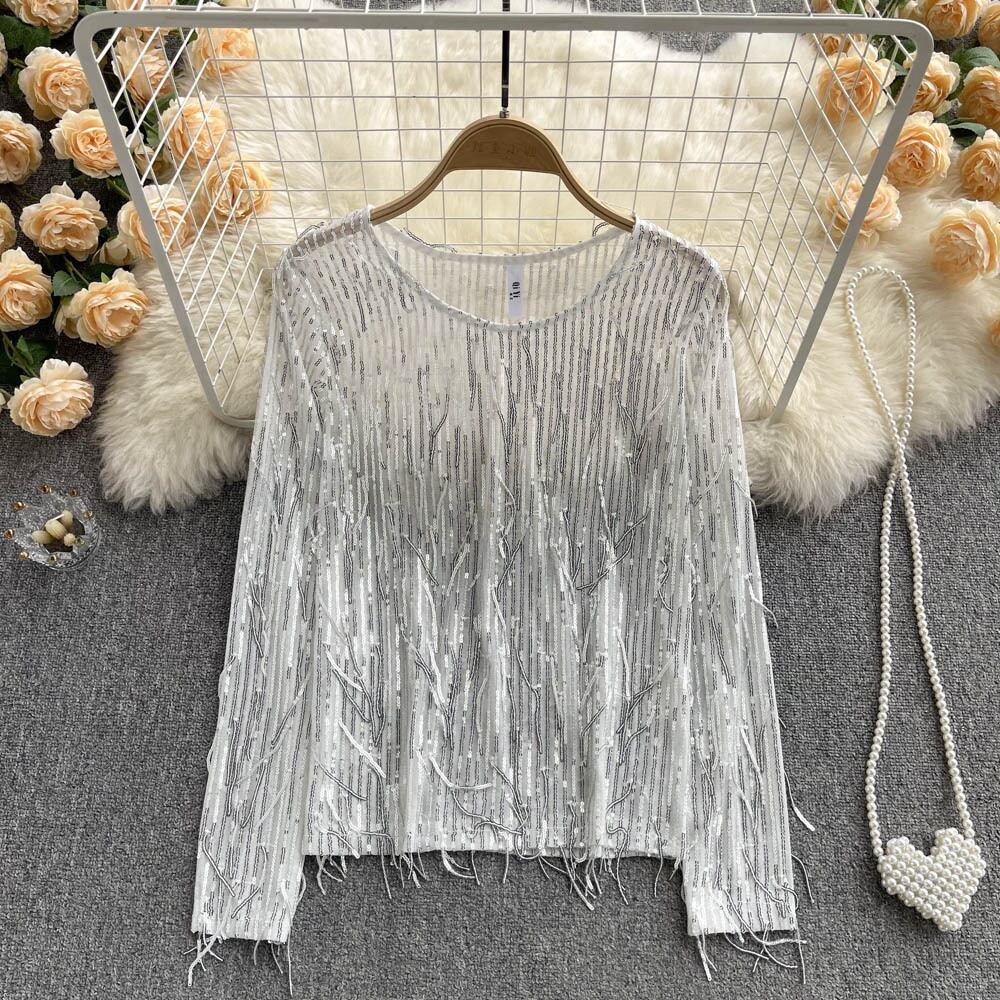 Round neck lace bottoming shirt women's autumn and spring new style inner 2022 fashion small shirt eign style mesh top bottoming shirt レース スプリング 春物 オータム 秋物 メッシュ Oネック lyxaj1064444780