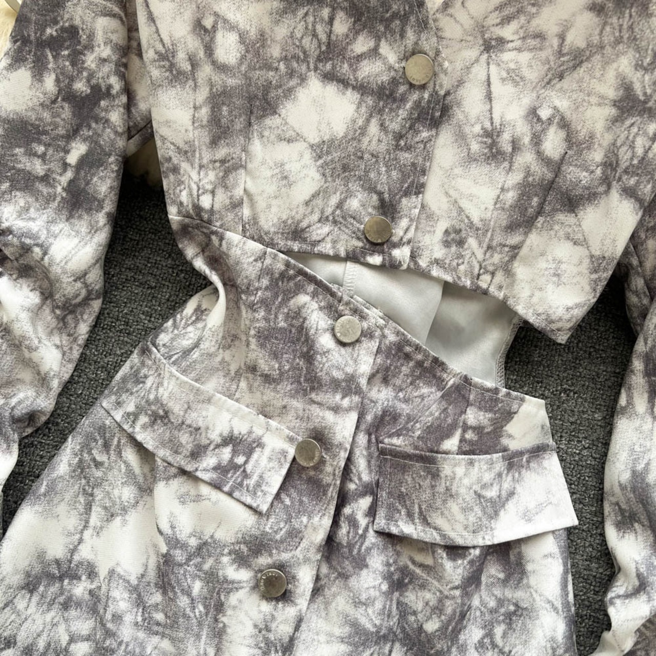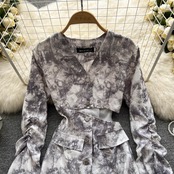 2022 new spring style scheming hollow waist dress women's long-sleeved printing waist slimming light luxury mid-length skirt ロング スプリング 春物 スカート lyxaj84377376592