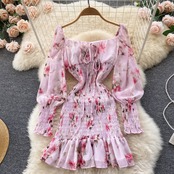 2022 spring new style pleated chiffon floral ruffled hips sweet temperament first love dress french skirt シフォン 大人ガーリー スウィート キュート カジュアル プリーツ スプリング 春物 花柄 スカート lyxaj36226477108