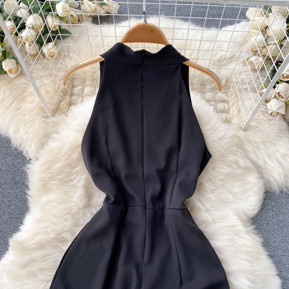 2022 sleeveless v-neck design halter jumpsuit retro fashion loose high waist slim casual wide leg pants ハイウェスト レトロ カジュアル ノースリーブ Vネック スリム ワイドレッグ ワイドパンツ lyxaj3911373198