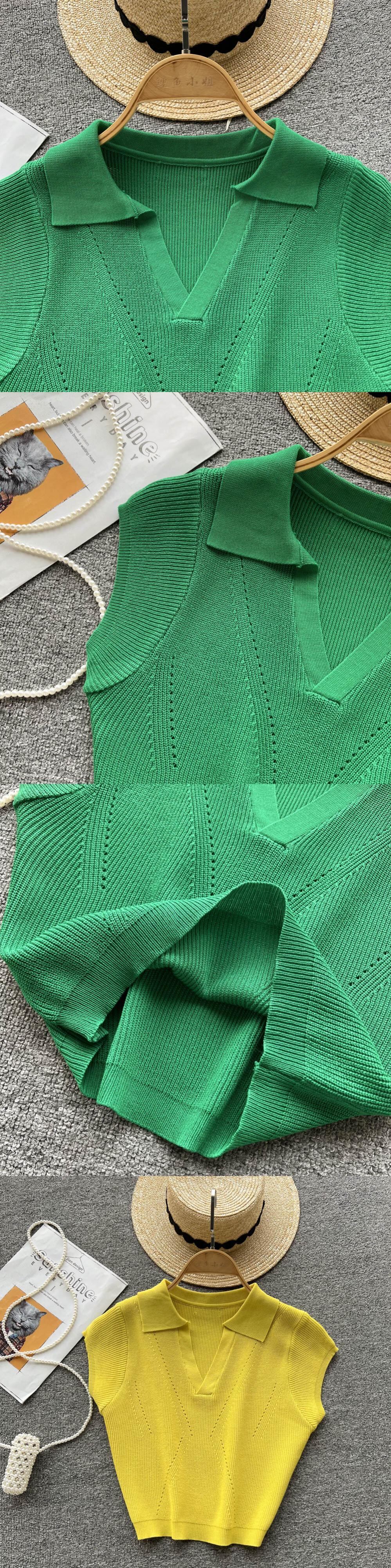 2022 design sense niche summer new style short-sleeved POLO shirt short knitted sweater lapel top women's tide ショート サマー 夏物 lyxaj28610371438
