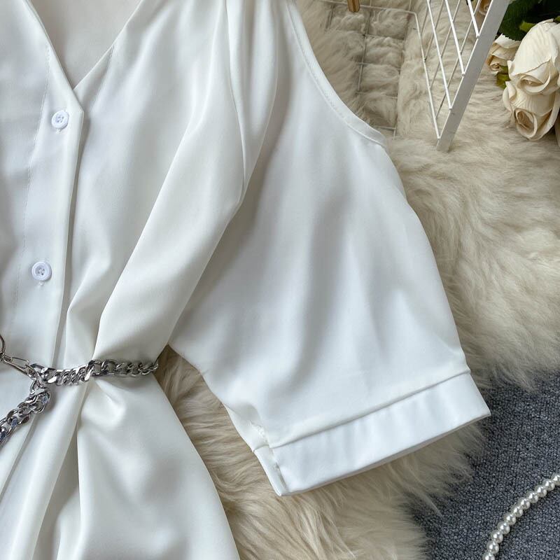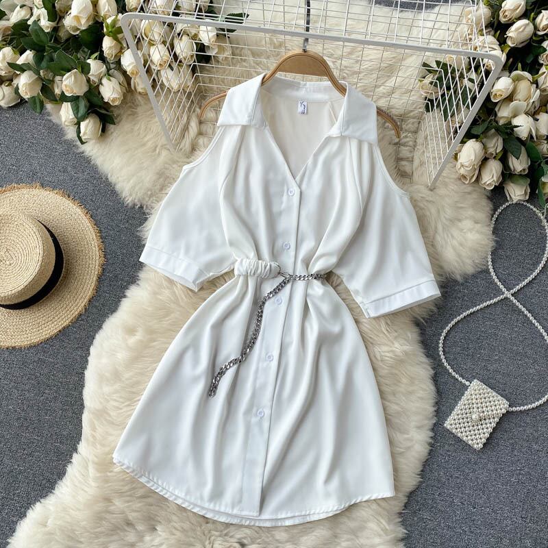 Light mature women's clothing 2021 new trendy shirt women's design sense niche hollowed out off-the-shoulder short-sleeved slim dress women スリム lyxaj7460284182