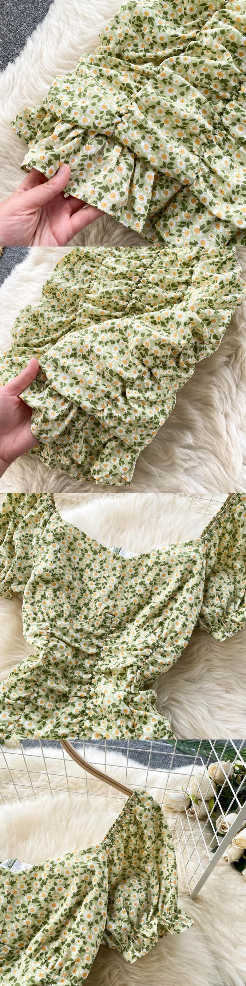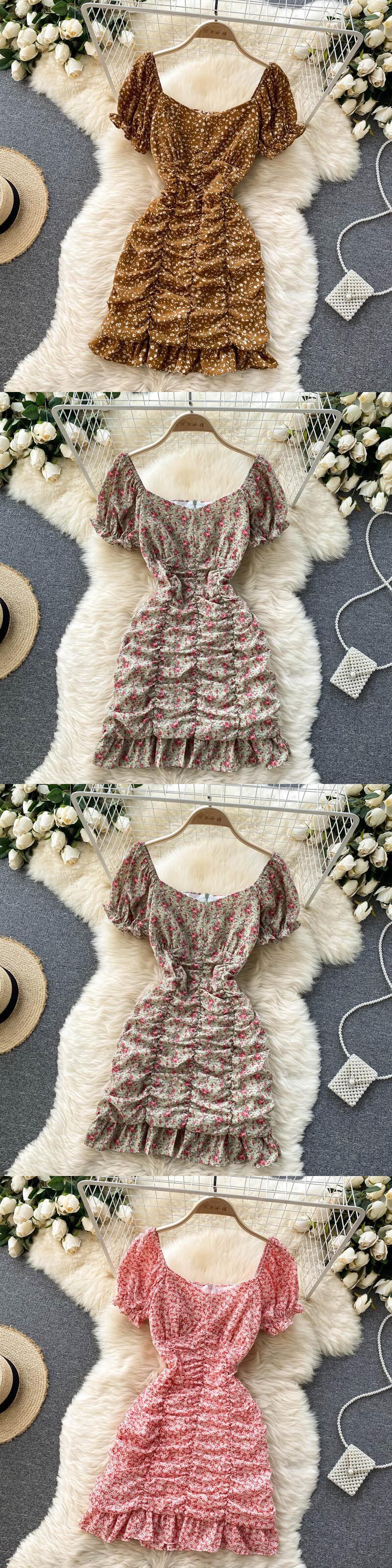 Net red fried street dress 2021 new summer dress goddess Fan Xinji pleated slim short section floral holiday skirt ショート レッド ストリート プリーツ サマー 夏物 花柄 スカート スリム lyxaj55238463715