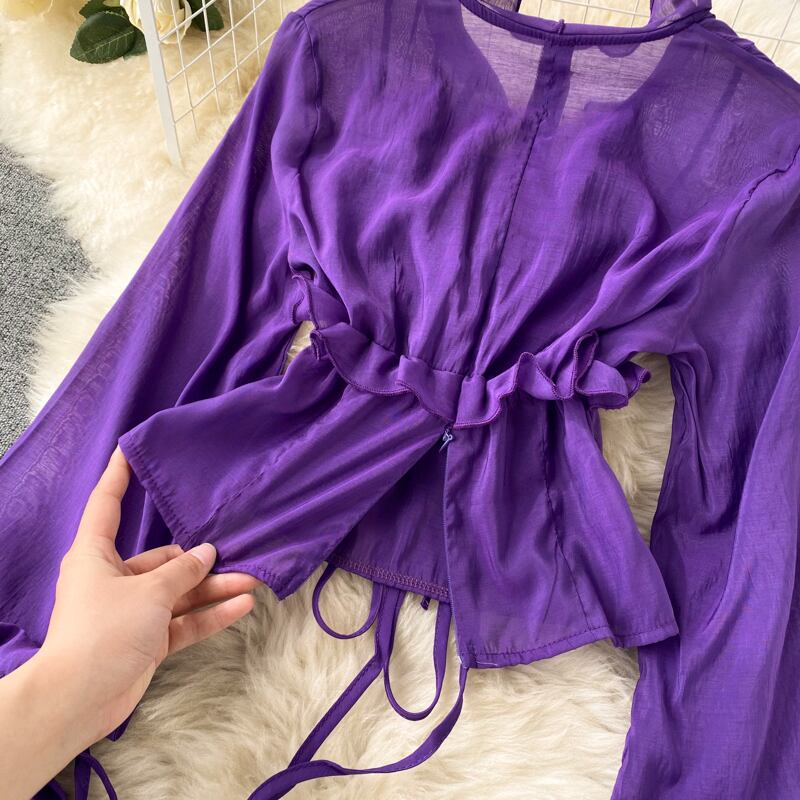 Spring new ruffled trumpet-sleeved shirt women's print stitching women's autumn mid-length design small crowd hip skirt スプリング 春物 オータム 秋物 スカート ステッチ lyxaj59326936736