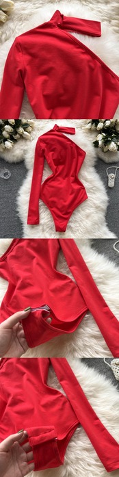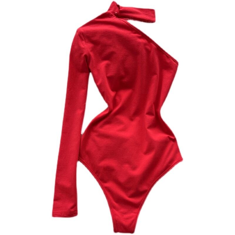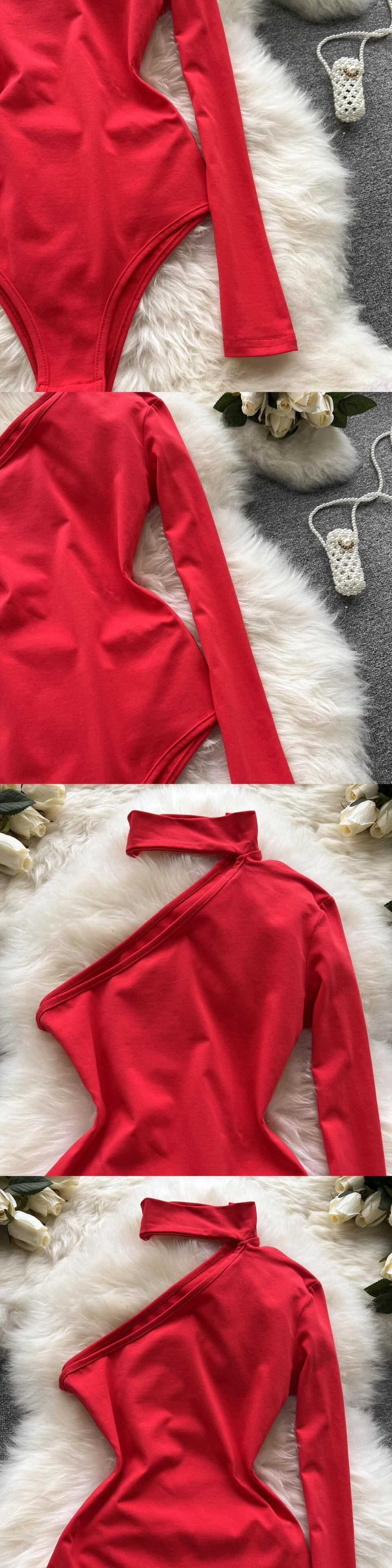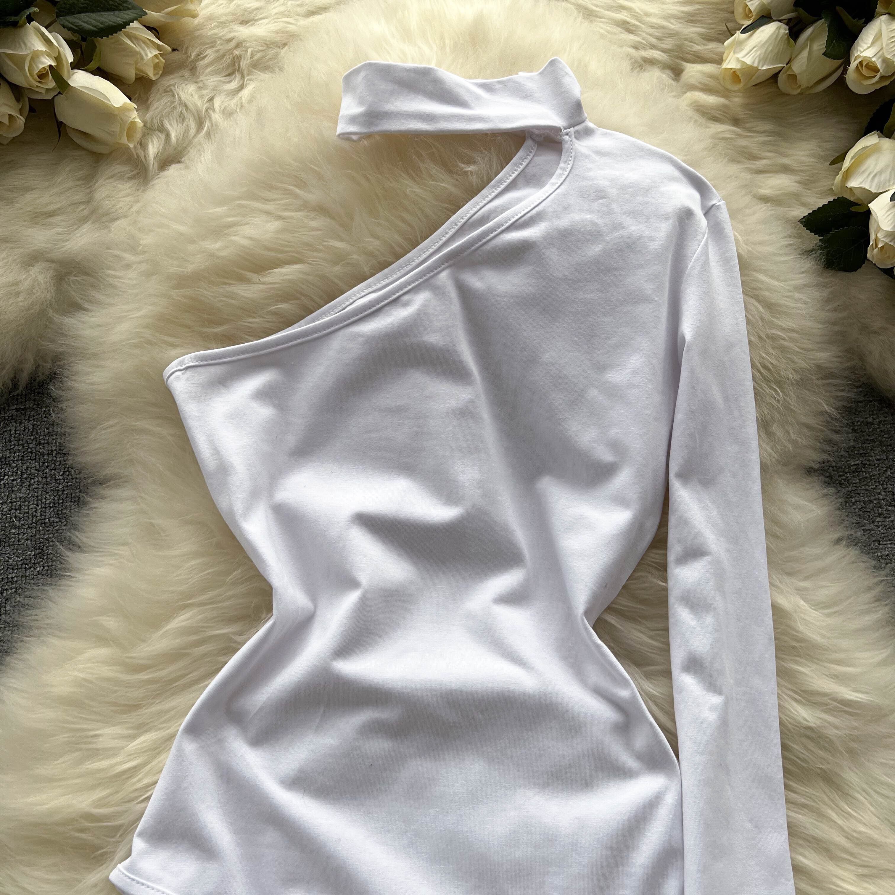 European and American sexy slim unilateral sloping shoulder high k one-piece T-shirt casual niche bottoming off-the-shoulder long-sleeved bottoming top ロング カジュアル スリム Tシャツ ヨーロピアン lyxaj53096699083