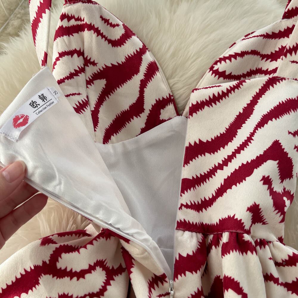 Light Mature Women's Sexy V-Neck Tube Top Sling Dress Slim Fit and Thin Zebra Print Puff Skirt スカート Vネック スリム lyxaj60191544907