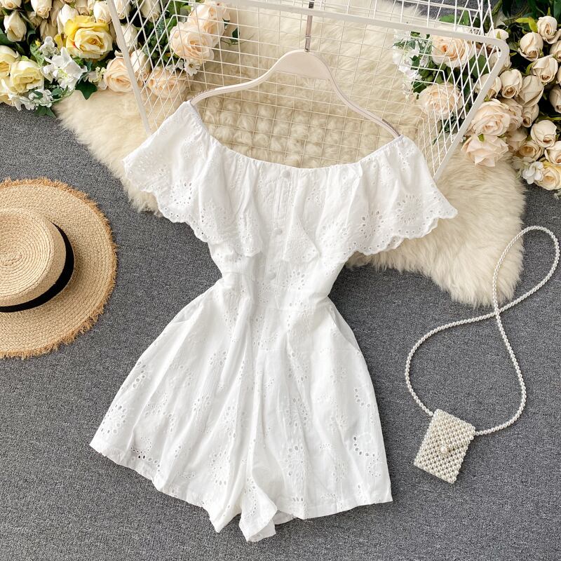 Purple jumpsuit women's summer dress 2020 new sweet ruffled one-shoulder square collar two-wear hollow wide-leg pants 大人ガーリー スウィート キュート カジュアル サマー 夏物 パープル スクウェア lyxaj48017365513