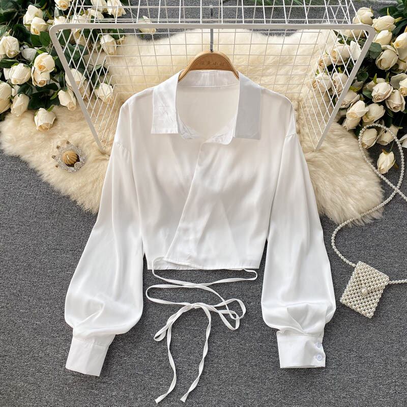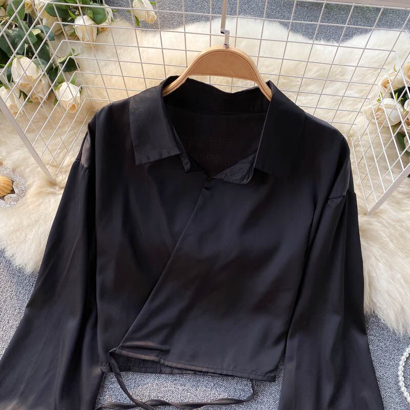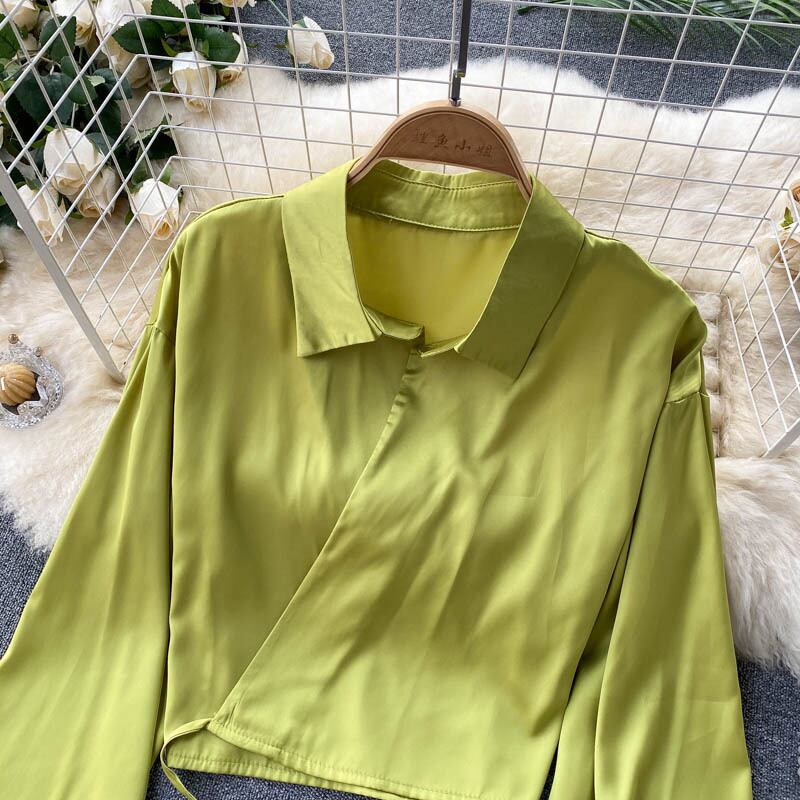 European and American ins tops, women's summer wear, temperament, satin, all-match design, straps, waist, thin, short shirts, women's trend ショート シャツ サマー 夏物 サテン ヨーロピアン lyxaj3300543905