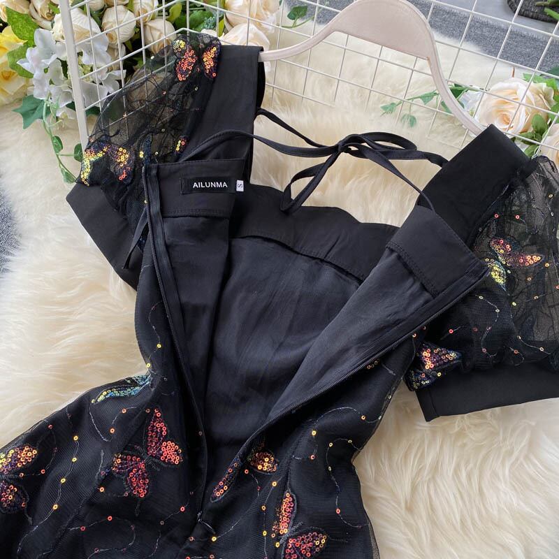 Palace style dress 2020 new summer dress French puff sleeve short fairy skirt mesh small dress dress ショート レース サマー 夏物 メッシュ スカート lyxaj52966141934