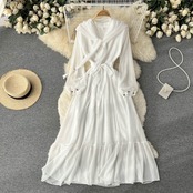 Ethnic style desert holiday skirt high-end temperament retro red V-neck lantern sleeves lace waist large swing dress レッド ランタンスリーブ レトロ レース スカート Vネック lyxaj2695816854
