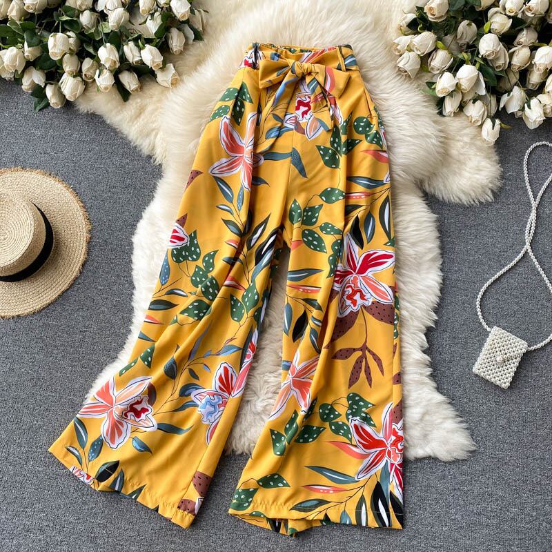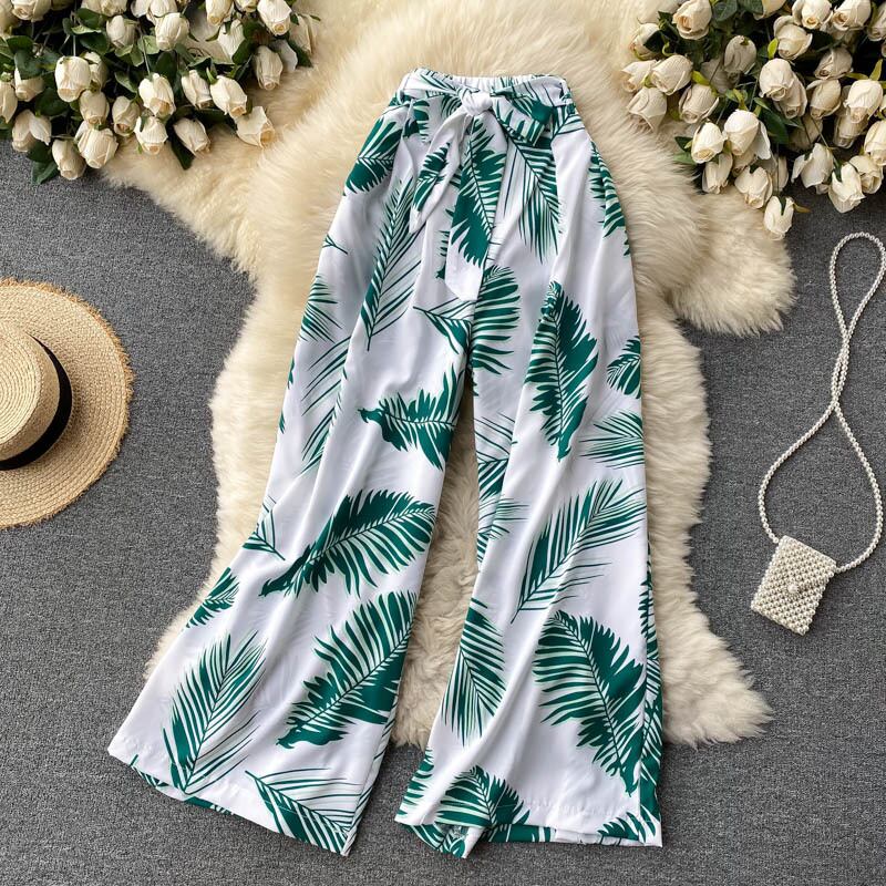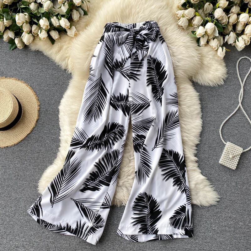 European and American ins fashion bloggers vacation style printing high waist thin all-match loose wide-leg pants women's casual pants women's pants ハイウェスト カジュアル ヨーロピアン lyxaj98179846148