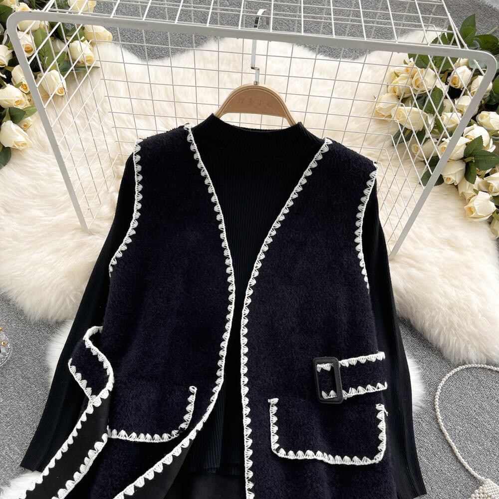 Celebrity temperament small fragrance suit simple and versatile bottoming knitted T-shirt top vest vest layered two-piece suit レッド Tシャツ lyxaj70440455255