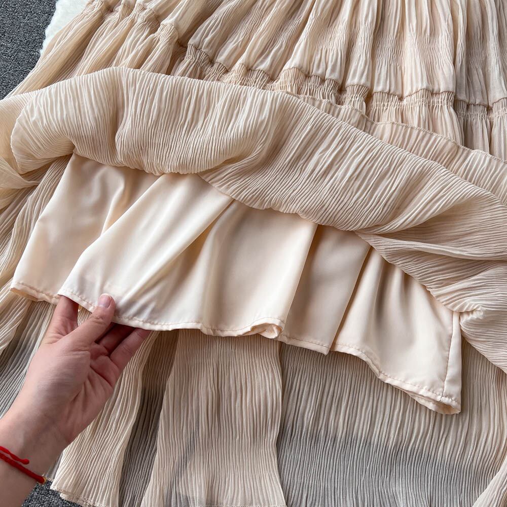 2022 spring new design sense French niche western style fairy bellflower skirt French retro knee-length pleated long skirt ロング レトロ プリーツ スプリング 春物 スカート フラワーデザイン lyxaj99814272918