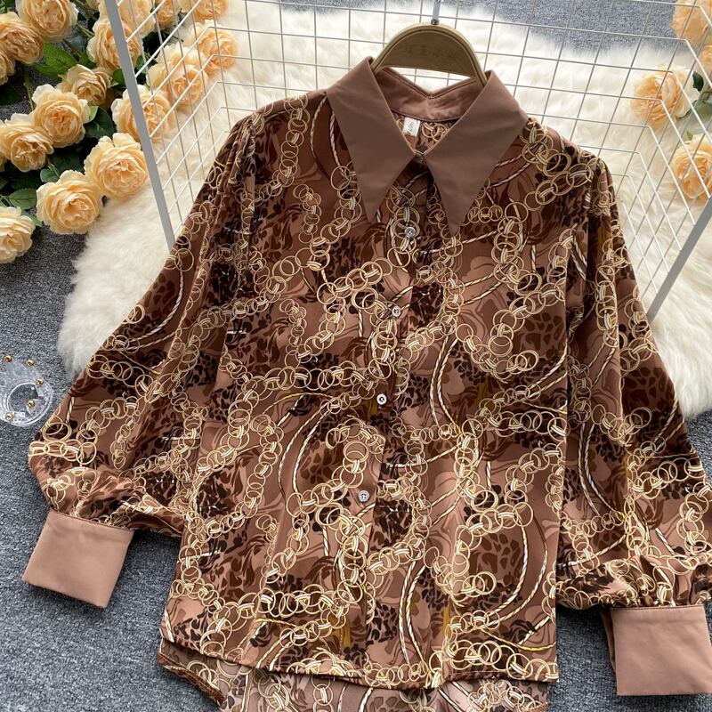 European and American style 2022 new spring and autumn retro floral chiffon printed shirt women's design Western chic top trend シフォン レトロ プリント スプリング 春物 オータム 秋物 花柄 ヨーロピアン lyxaj59741461387