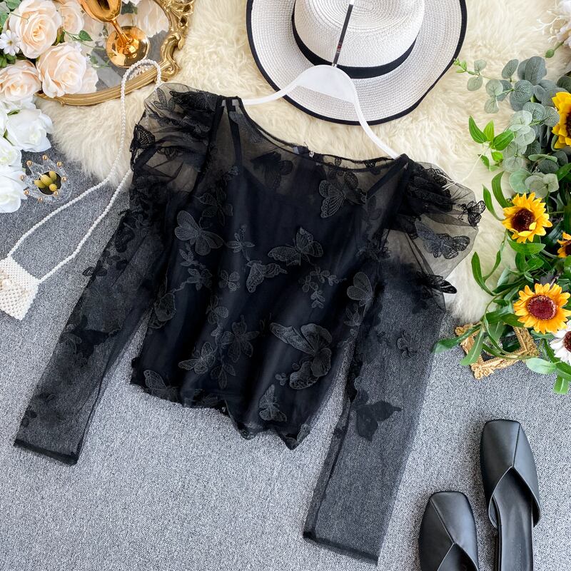 French retro palace style top women's 2019 new heavy industry three-dimensional embroidery eign puff sleeves short shirt tide ショート レトロ レース 刺繍 lyxaj16477784261