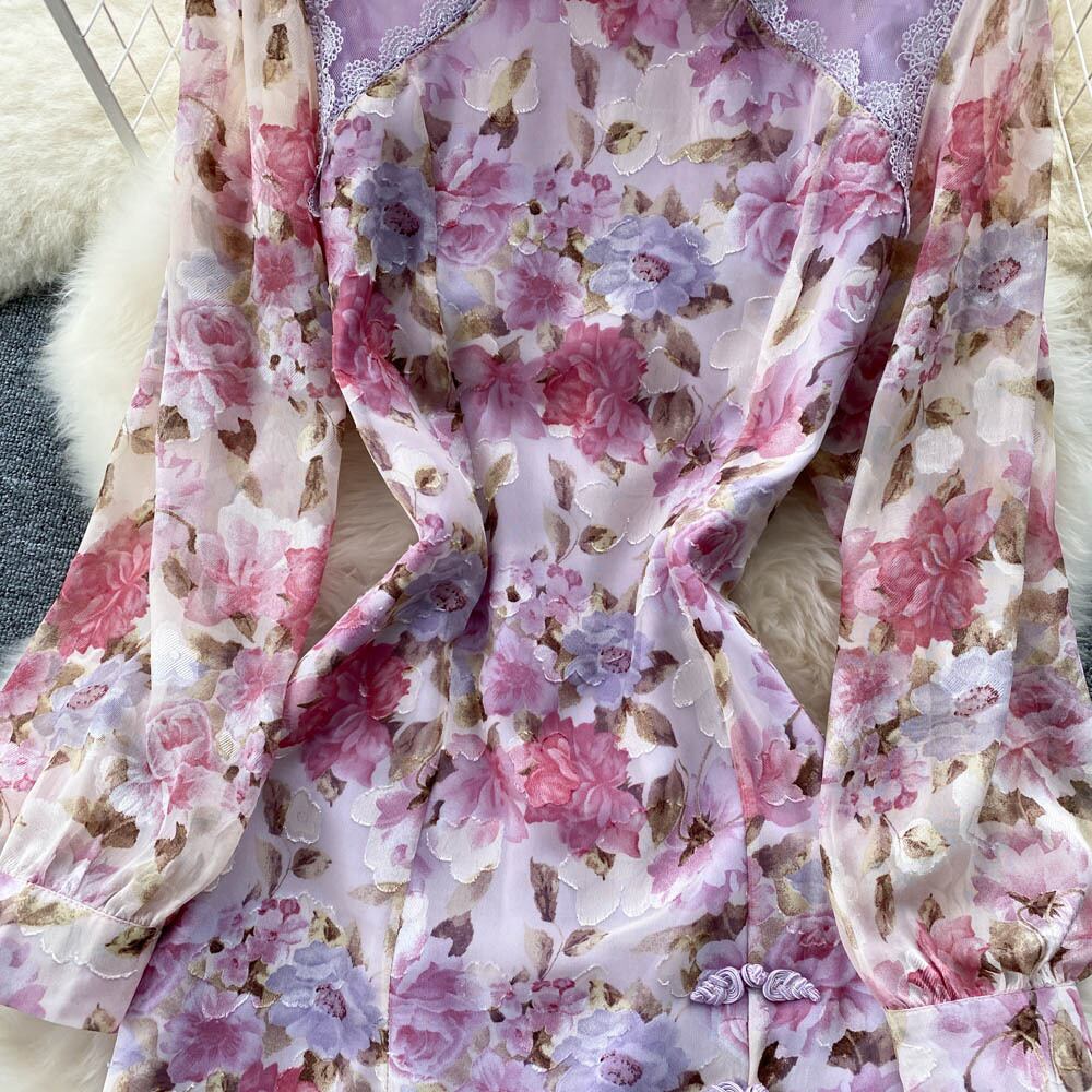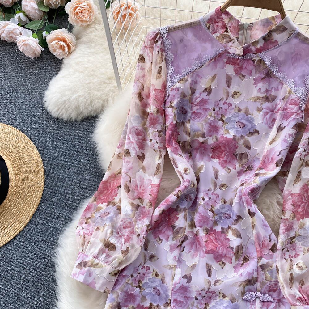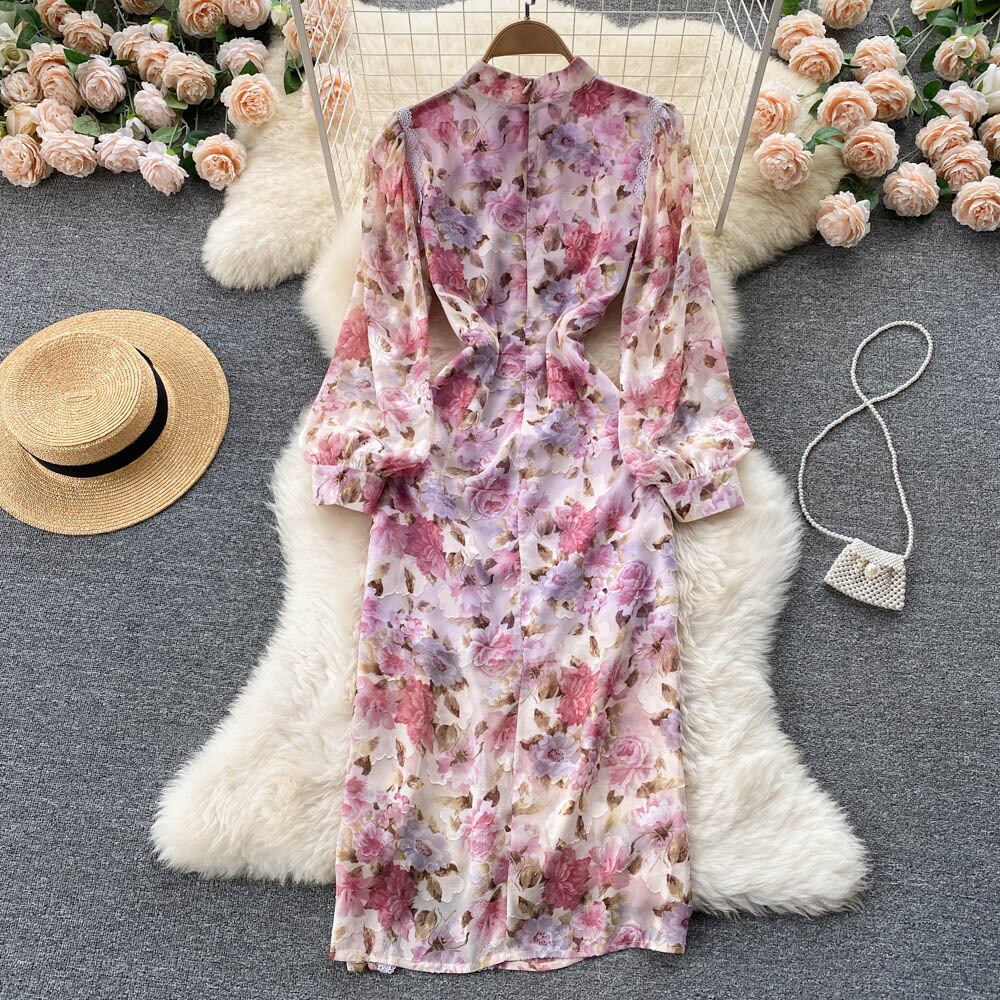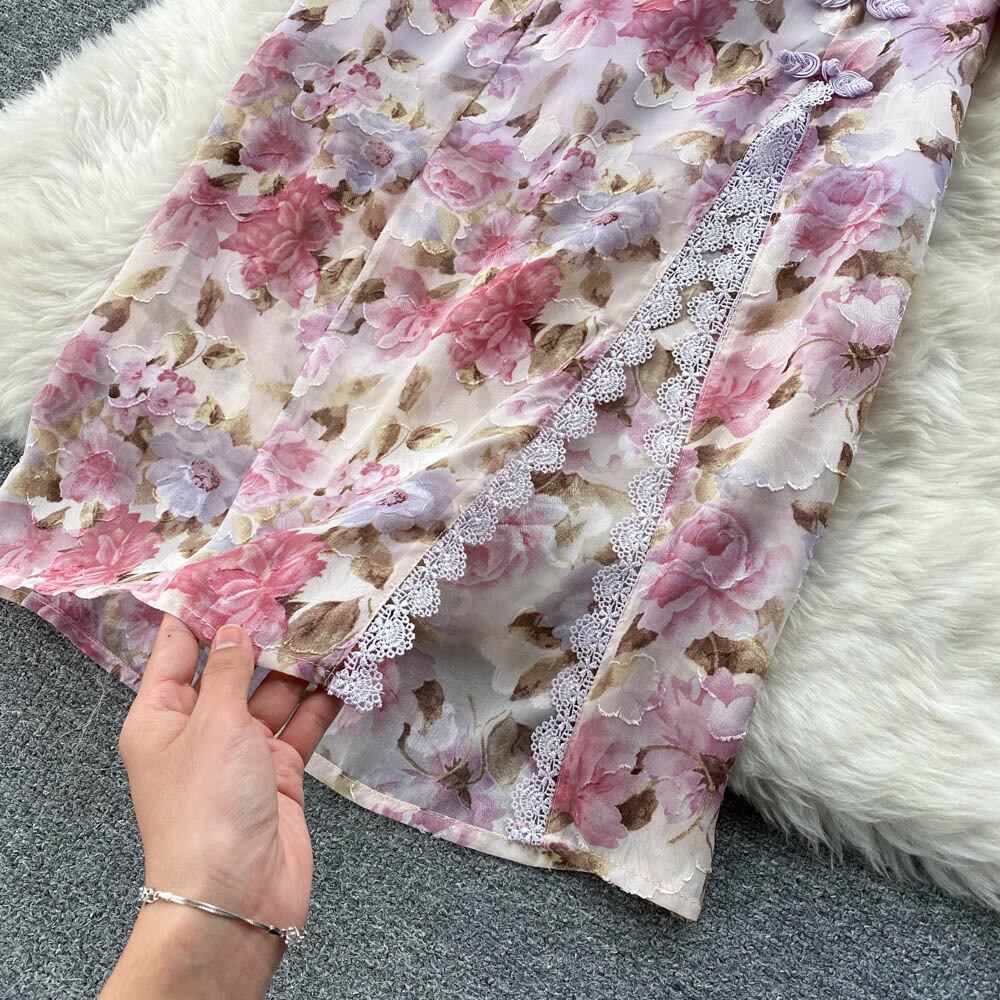 Improved cheongsam high-end temperament mid-length slim-fit split floral dress elegant and feminine hip-pack A-line skirt エレガント 花柄 スカート Aライン lyxaj62358823284