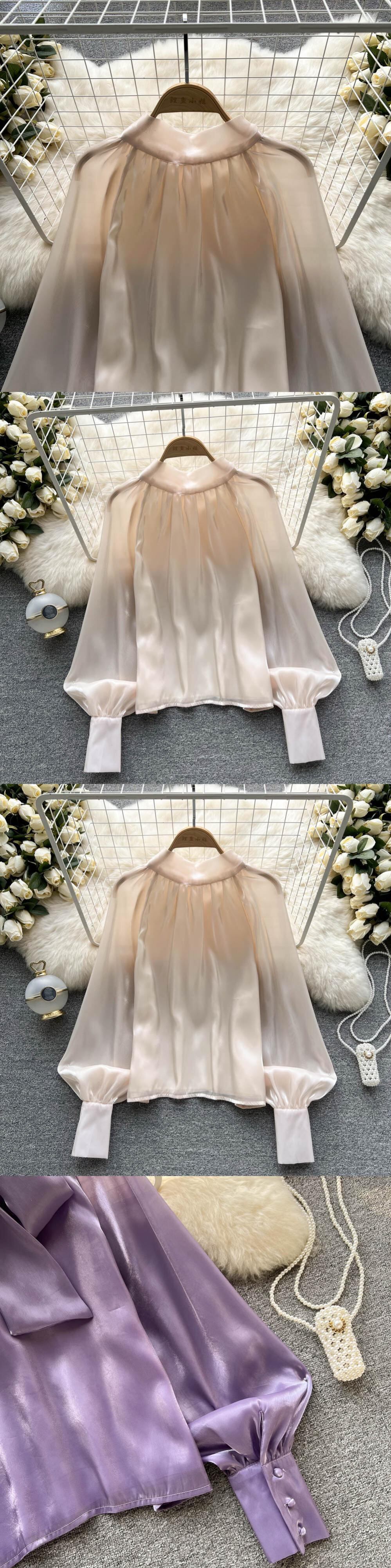 2022 spring new color glaze gentle wind mesh streamer shirt top women's design niche pearl chiffon shirt シフォン スプリング 春物 メッシュ パール 真珠 lyxaj65412423629