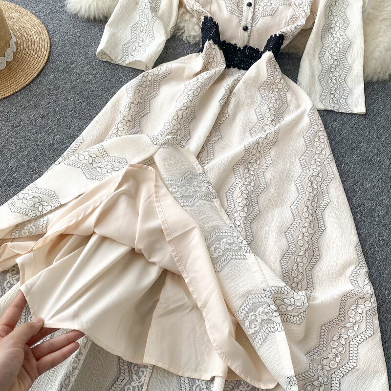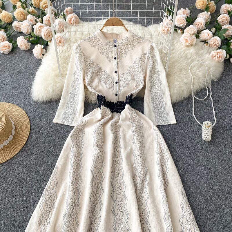 French dress spring new print niche mid-length skirt elegant temperament waist thin mid-sleeve women's skirt エレガント スプリング 春物 スカート lyxaj78090780229