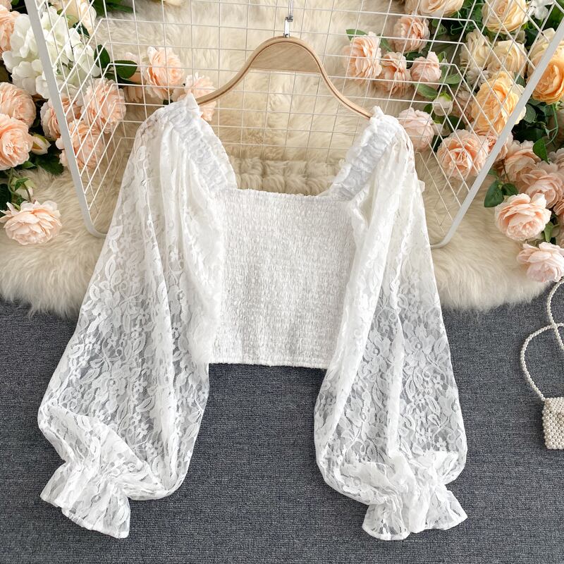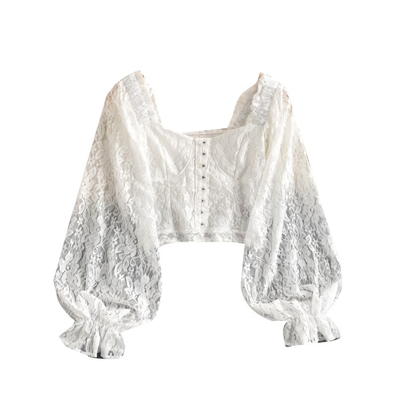 Fairy lace bottoming shirt women's autumn and winter new palace style retro lantern sleeves slim short top women's all-match trend ショート ランタンスリーブ レトロ レース オータム 秋物 ウィンター 冬物 スリム lyxaj33635673207