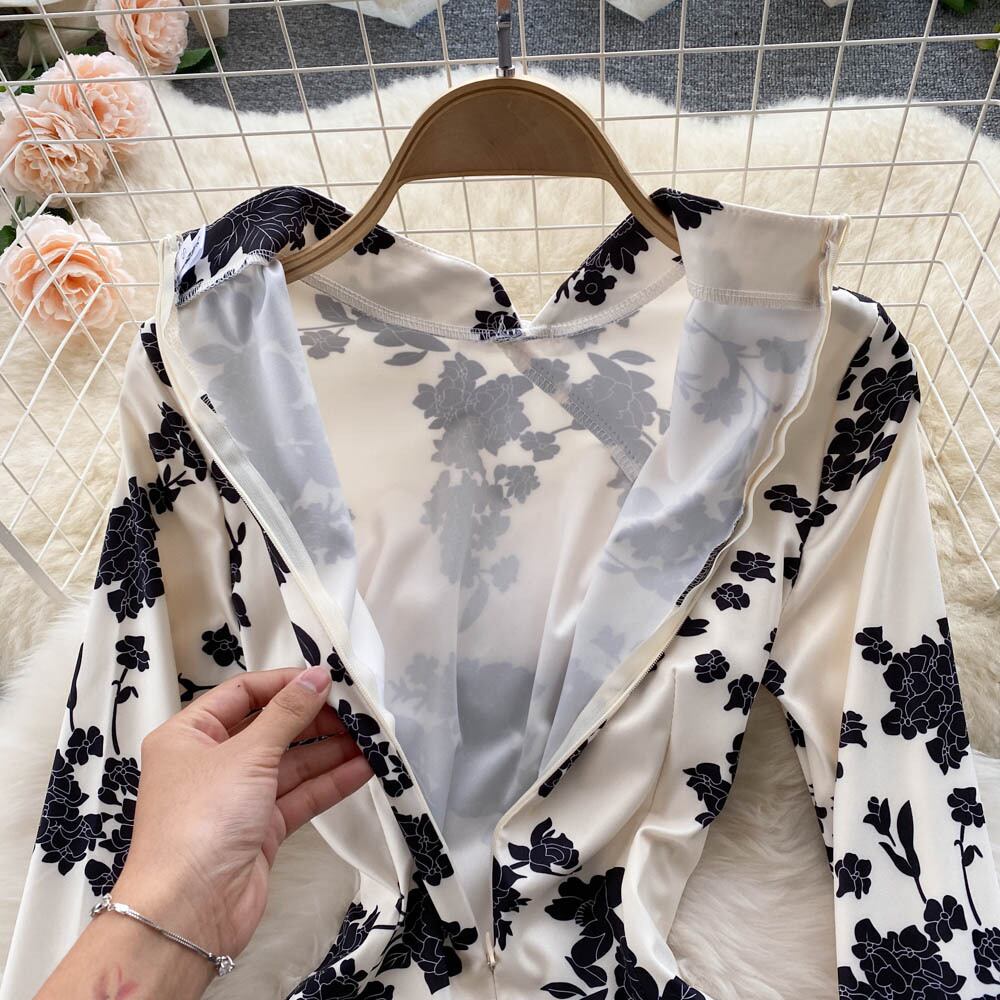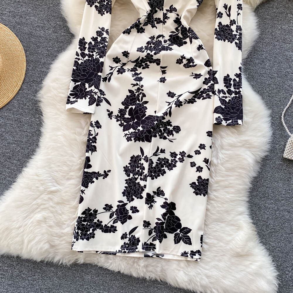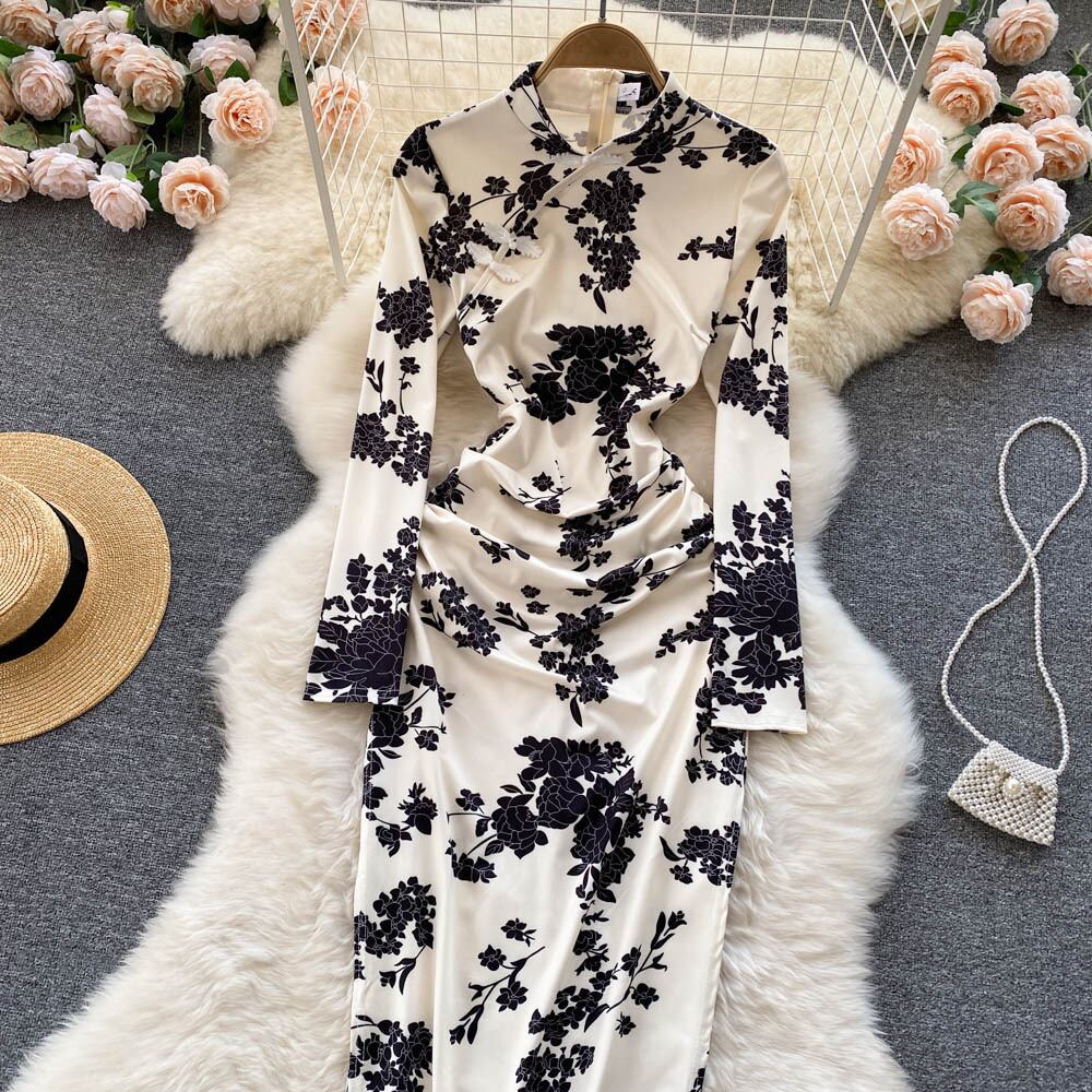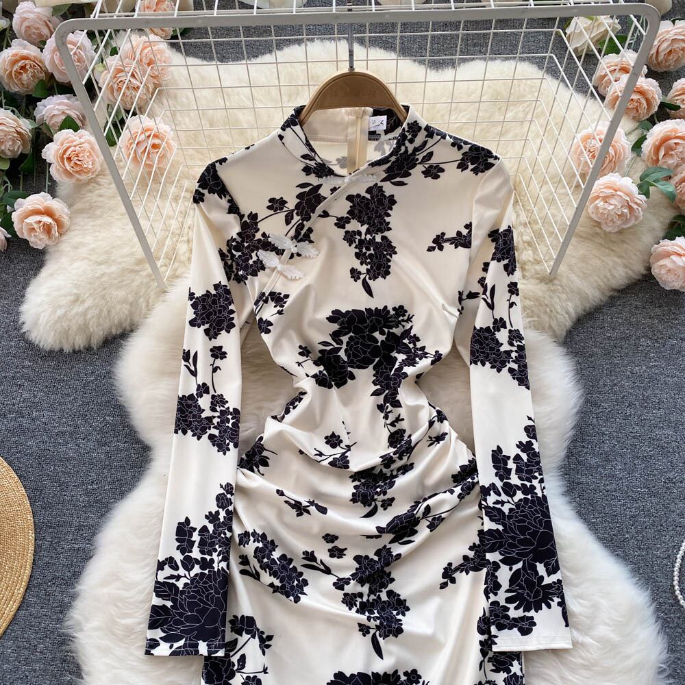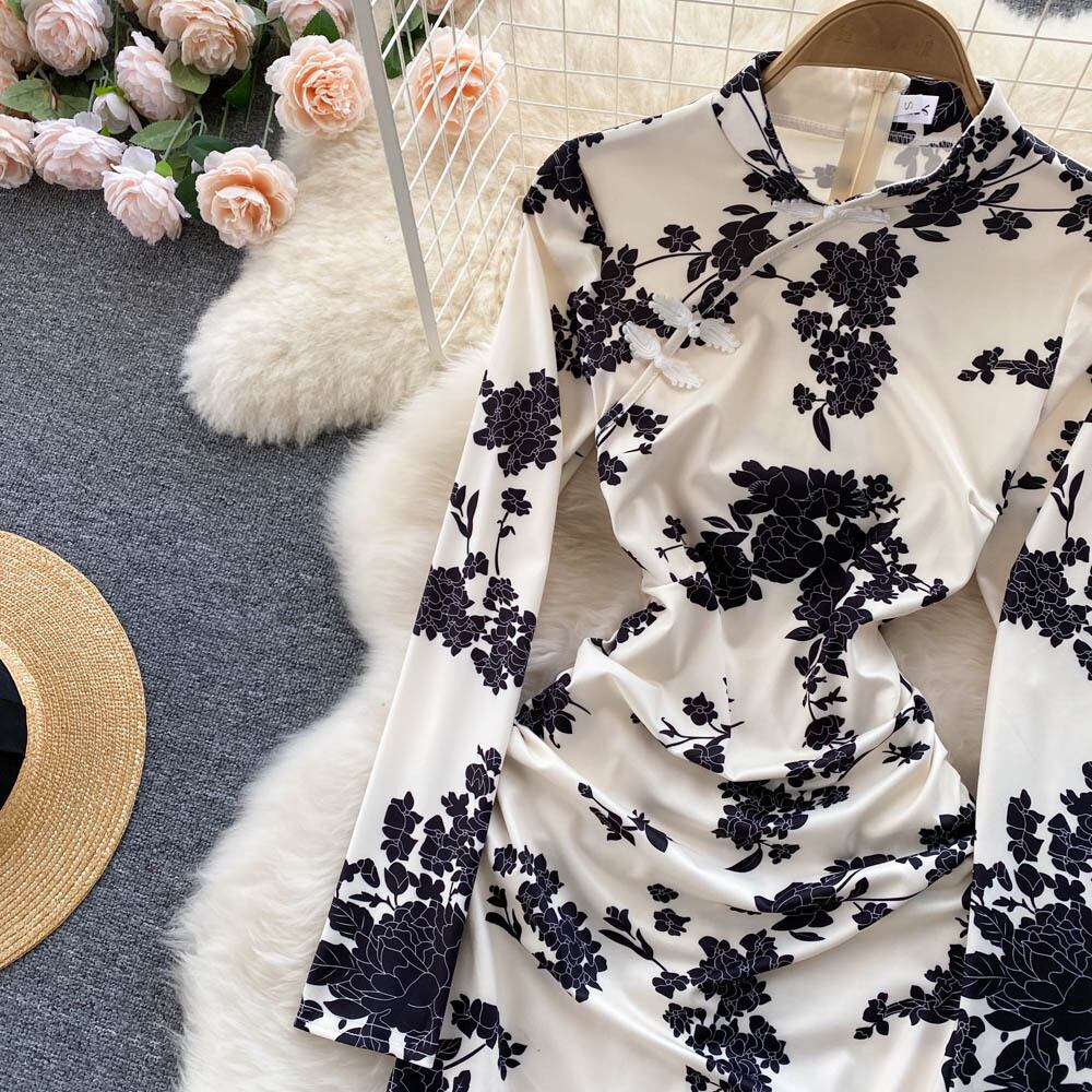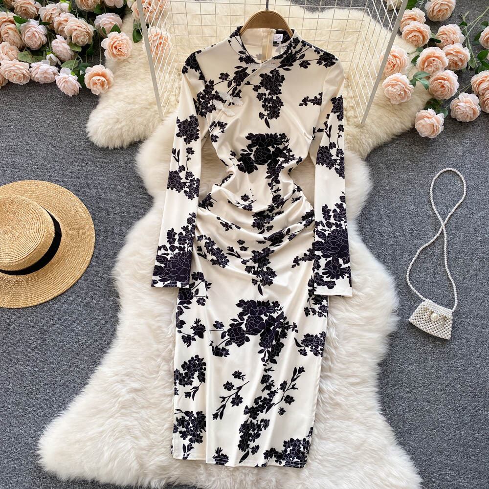 Improved cheongsam, young high-end temperament, retro print, stand-up collar dress レトロ lyxaj47574936217