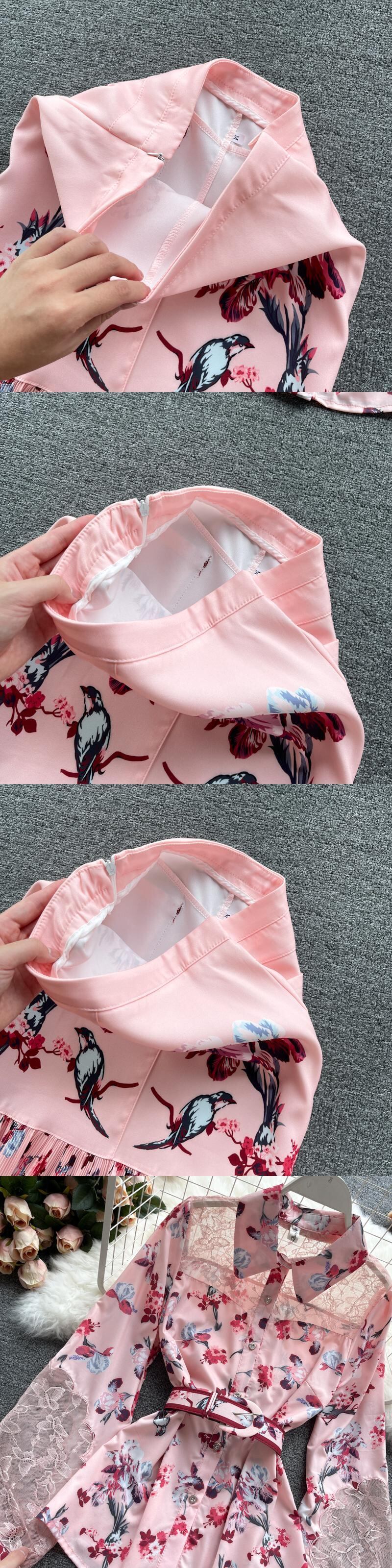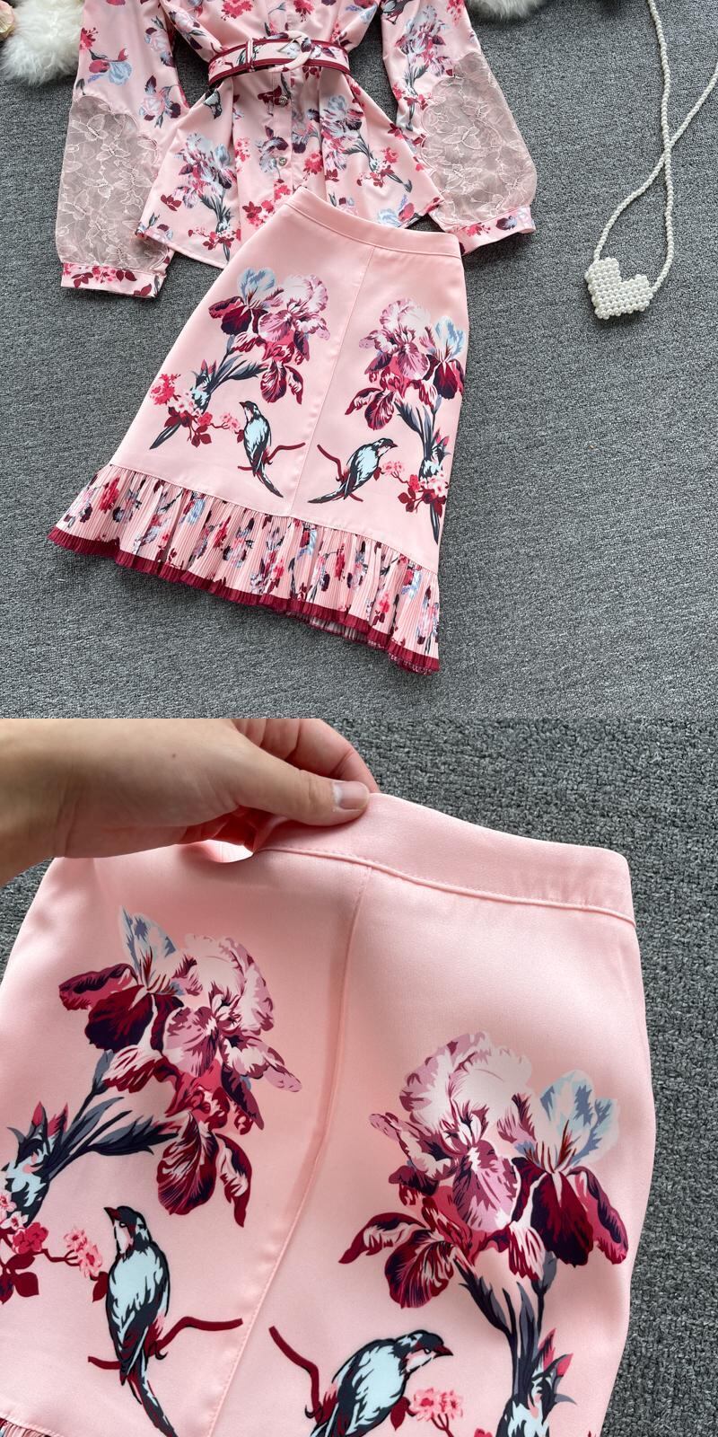 Celebrity temperament suit spring and summer new ladies shirt design sense lace stitching elegant printed skirt two pieces レース プリント エレガント スプリング 春物 サマー 夏物 スカート ステッチ lyxaj33027776553