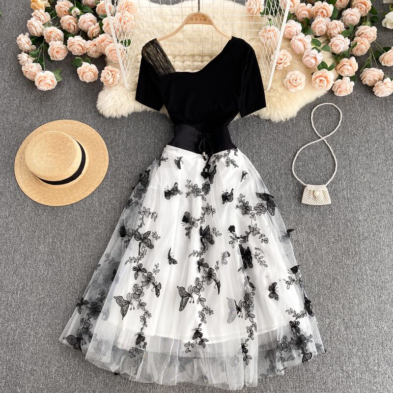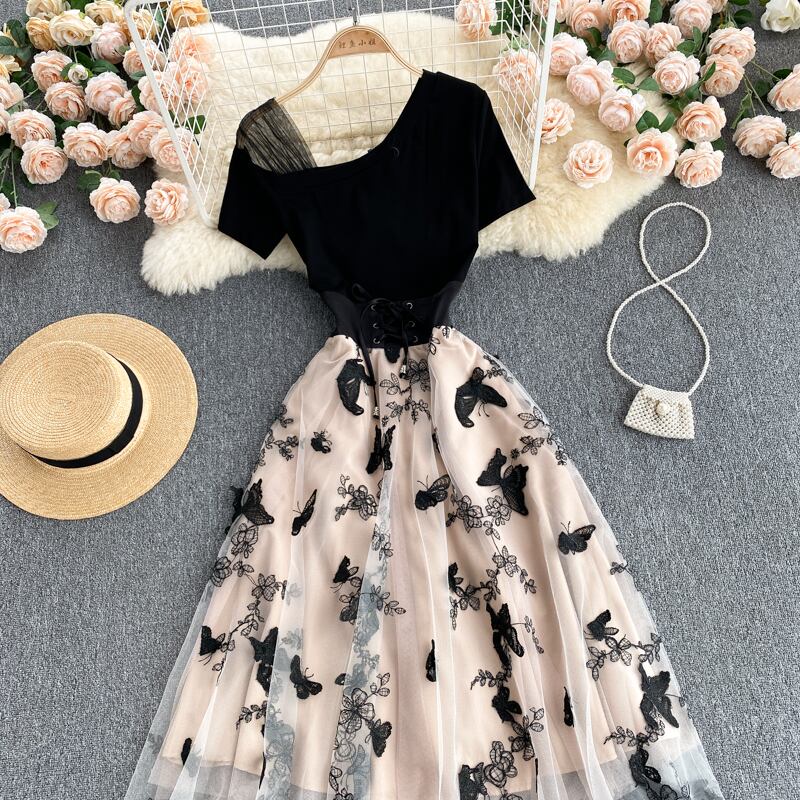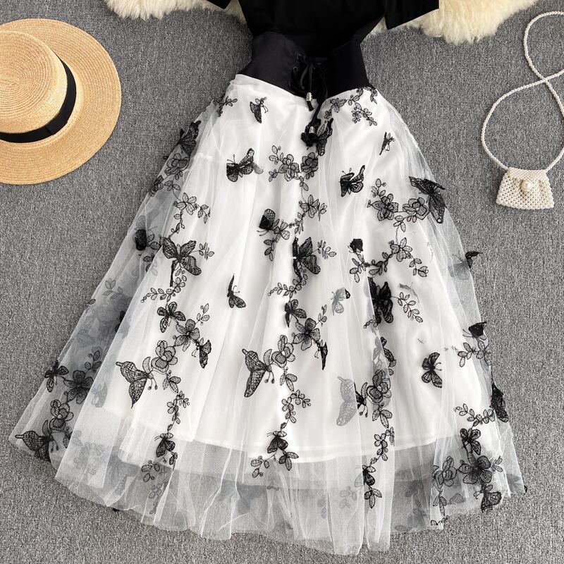 Celebrity dress 2021 new summer dress women's design sense straps waist and slim mid-length fairy mesh skirt サマー 夏物 メッシュ スカート スリム lyxaj3019498327