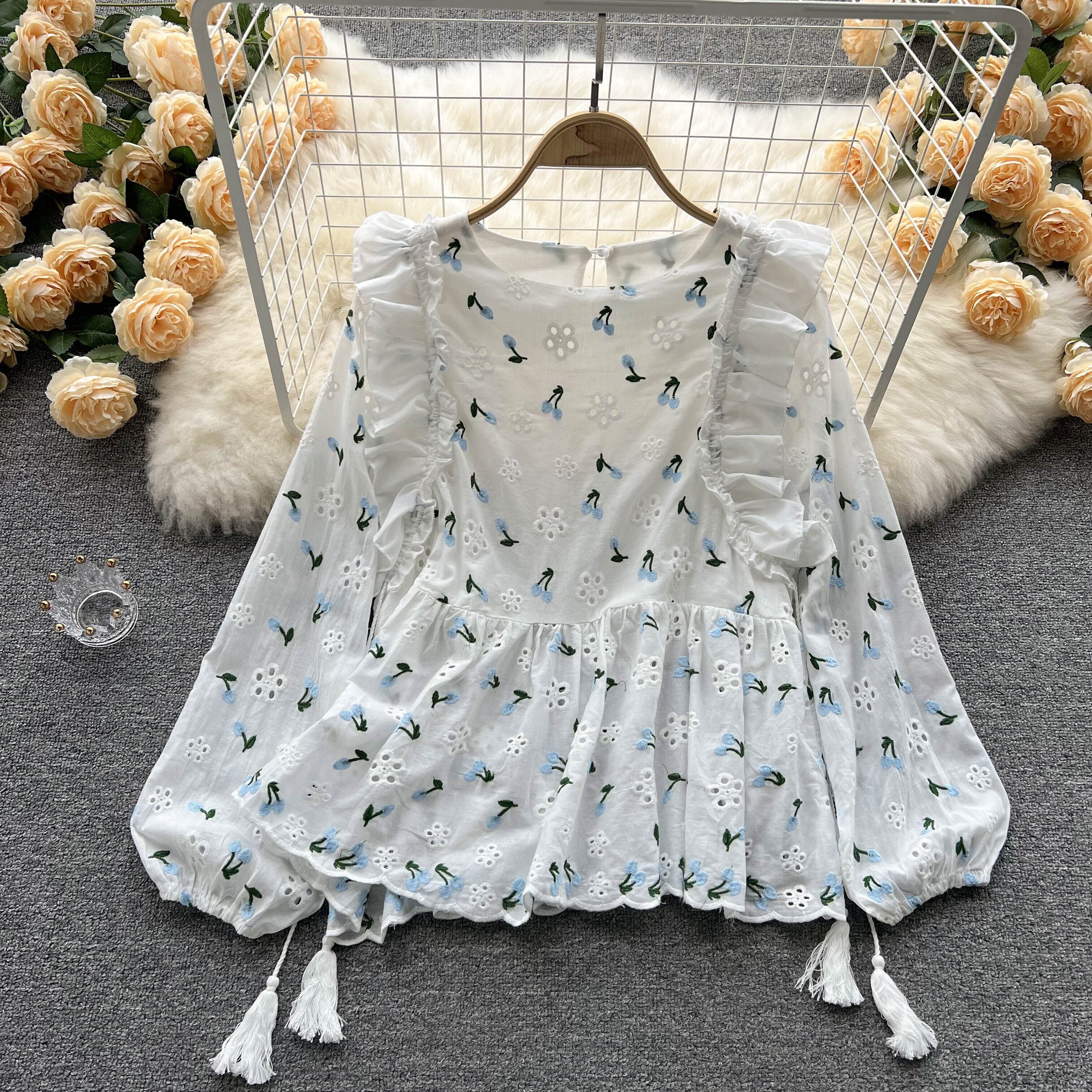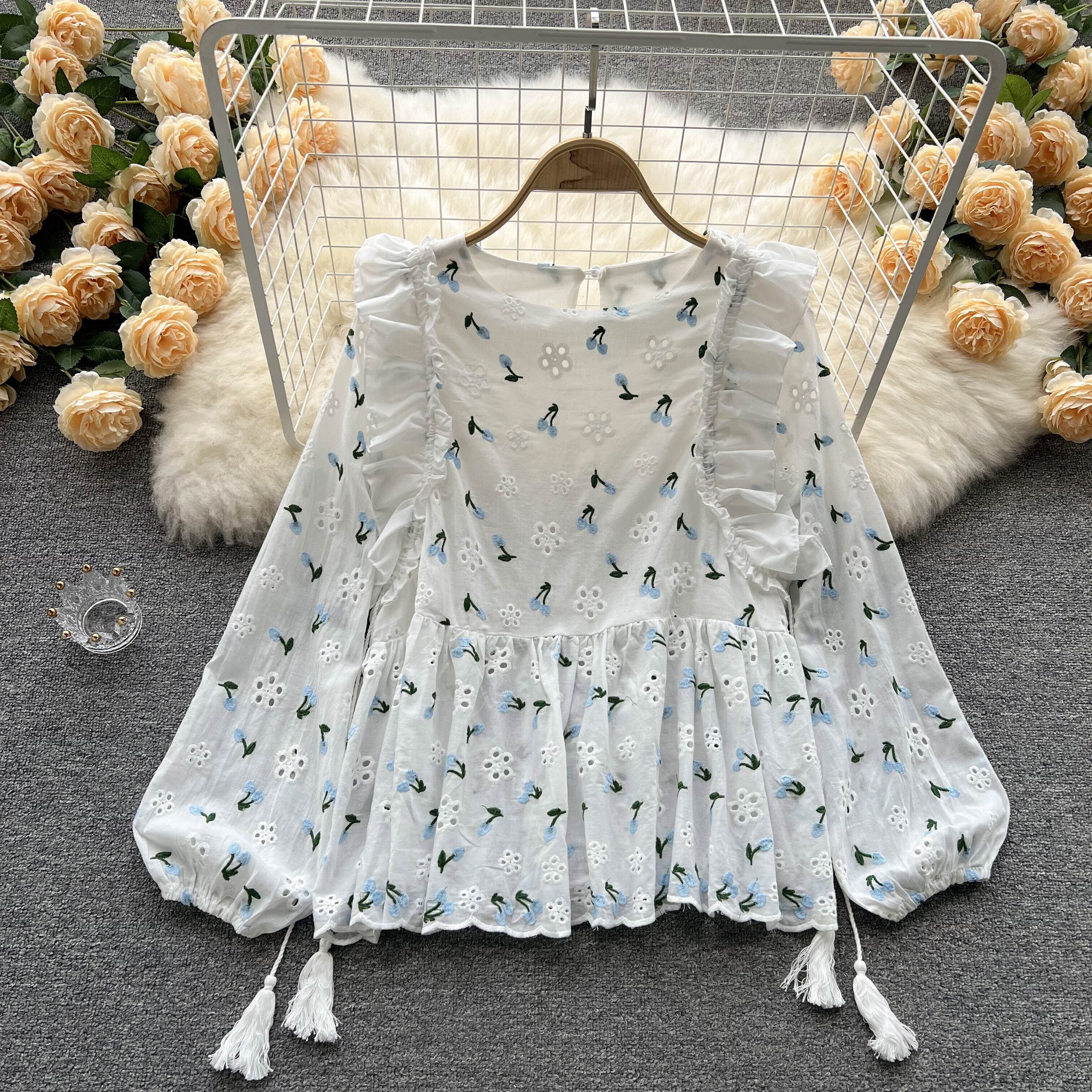 South 's new chic version of the temperament sweet top puff sleeves broken flower wood ear loose thin shirt 大人ガーリー スウィート キュート カジュアル フラワーデザイン lyxaj6772264180