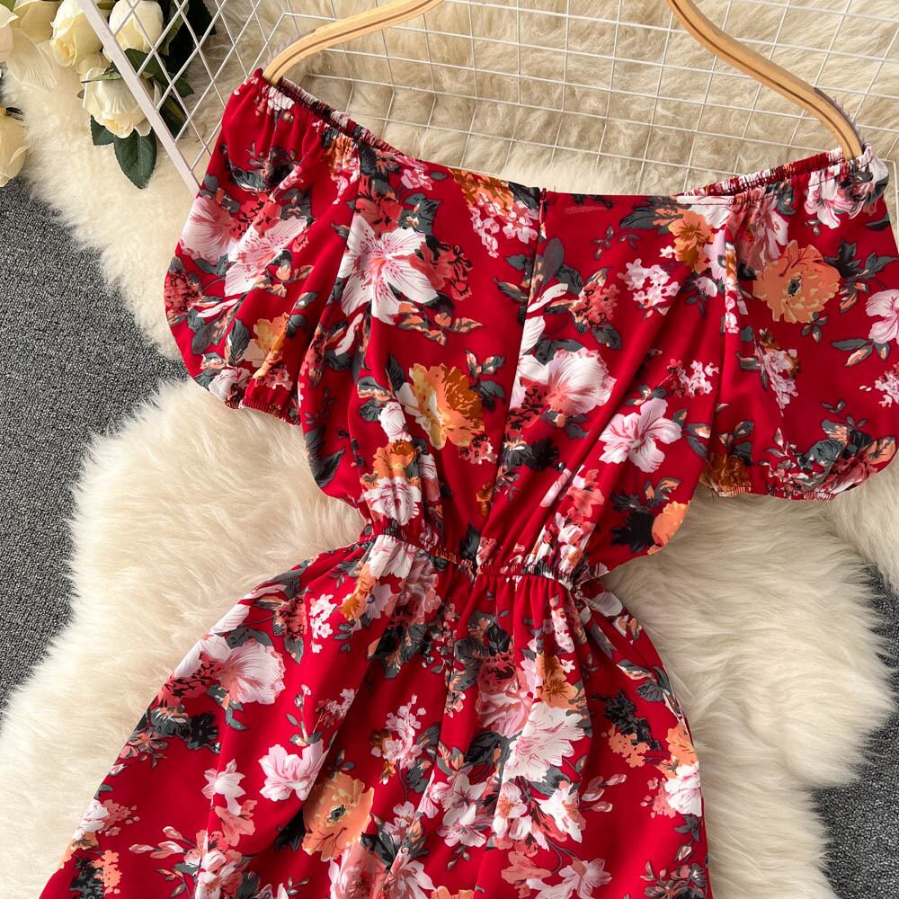 European and American style printed jumpsuit women's summer vacation style off-the-shoulder short-sleeved one-word collar irregular wide-leg casual pants プリント カジュアル サマー 夏物 ヨーロピアン lyxaj44470236559