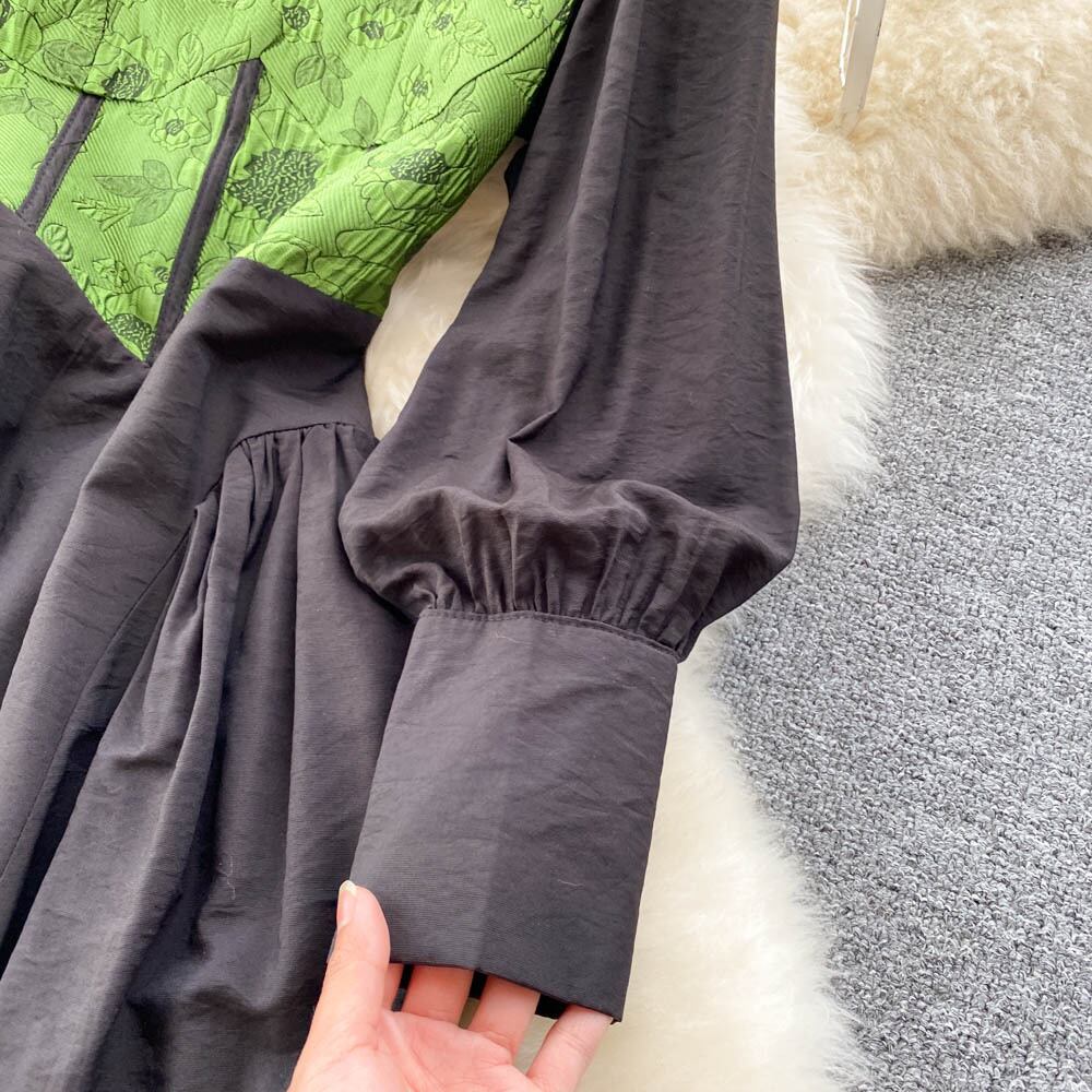 French retro contrast color light luxury ladies small dress chic artistic long skirt female waist thin dress trendy ロング レトロ スカート lyxaj74215910729