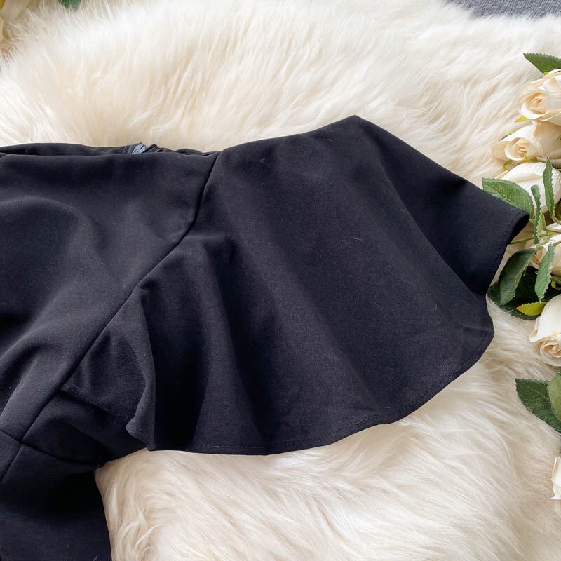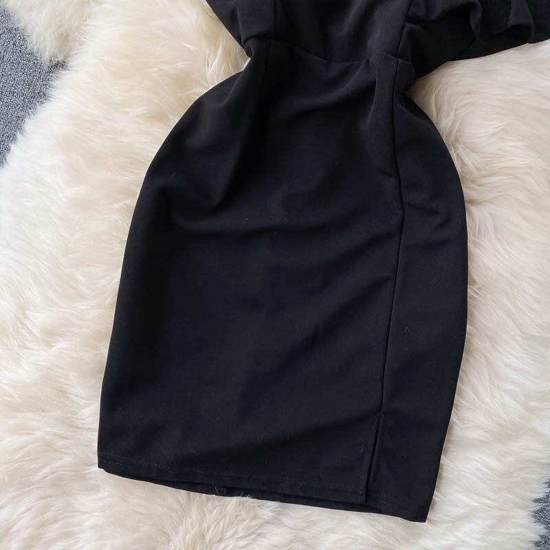Tide brand skirt design sense careful machine slanted shoulder one-shoulder ruffled chest pad waist thin slit bag hip dress スカート lyxaj81223551207