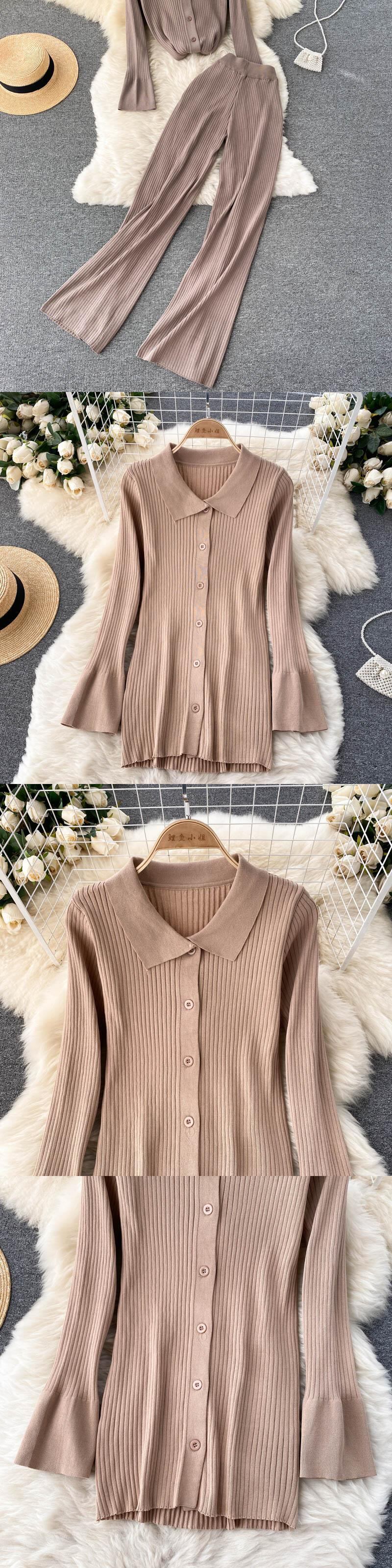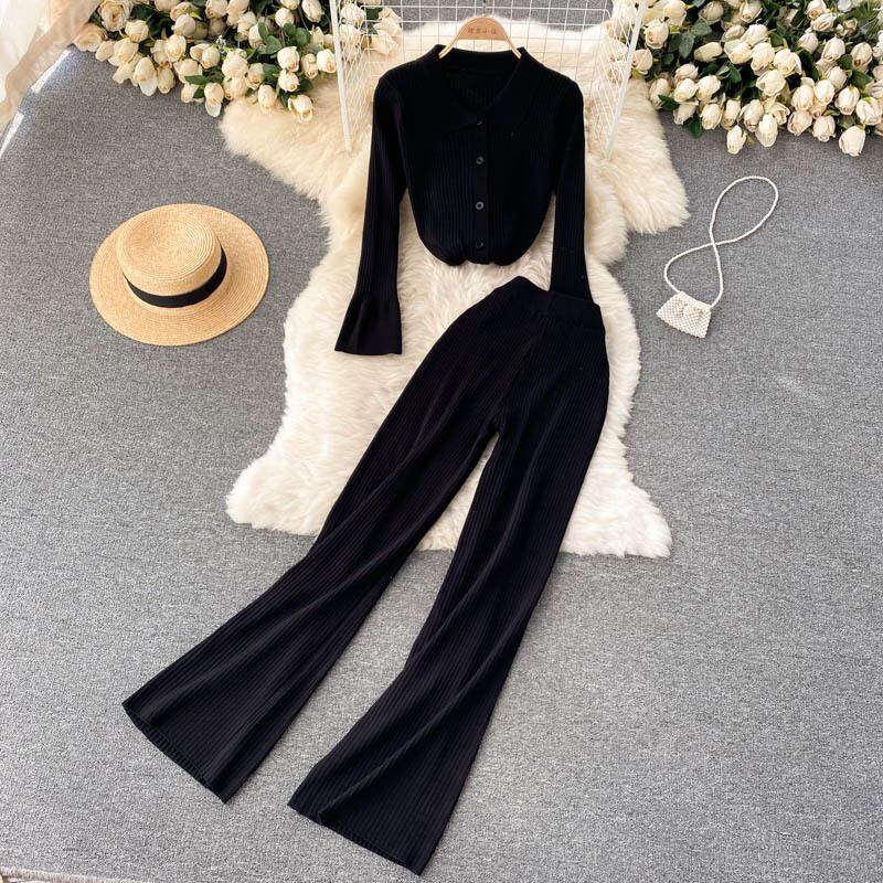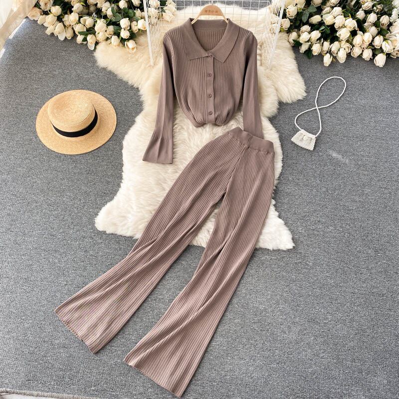 Autumn new light mature suit female doll collar long-sleeved cardigan top high waist thin knitted wide leg pants two-piece set ハイウェスト ロング カーディガン オータム 秋物 ワイドレッグ ワイドパンツ lyxaj54929488830