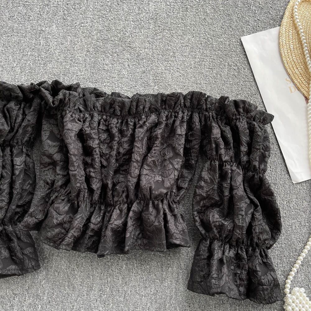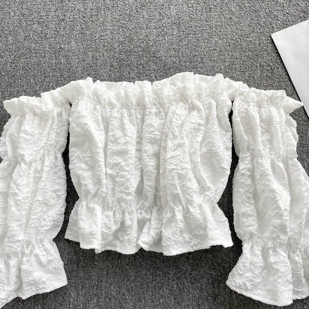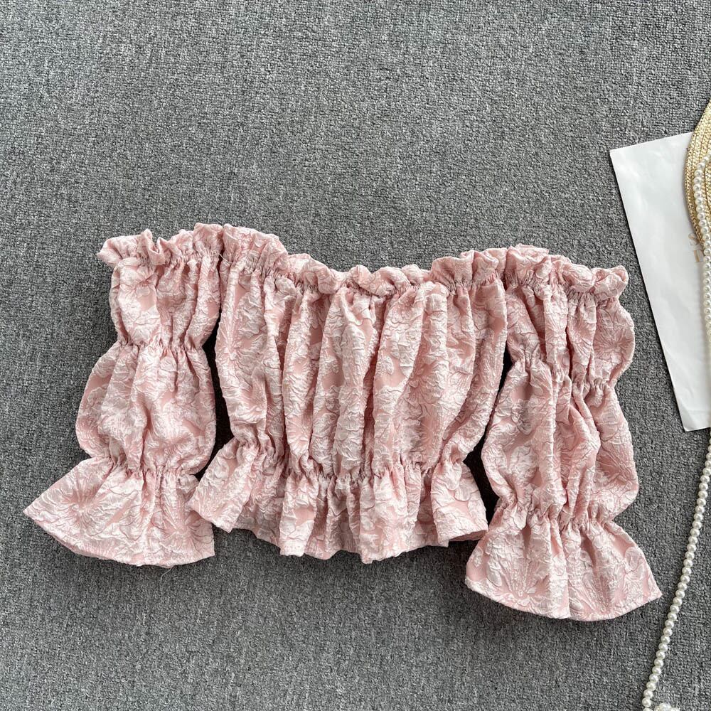 Spring and summer new gentle wind one-word collar off-the-shoulder long-sleeved shirt niche pleated waist sweet shirt floral top ロング 大人ガーリー スウィート キュート カジュアル プリーツ スプリング 春物 サマー 夏物 花柄 lyxaj35622277895