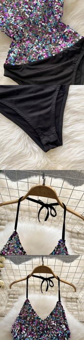 Europe and the United States's new sexy wild V-neck halter neckless back Slim heavy work drill sequins female personality high k jumpsuit Vネック スリム lyxaj22653284936