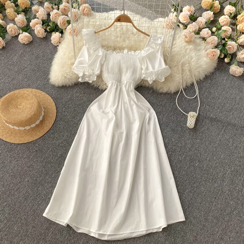 French Hepburn style one-shoulder dress women's 2022 summer new short-sleeved super fairy retro sweet first love long dress ロング レトロ 大人ガーリー スウィート キュート カジュアル サマー 夏物 lyxaj58089609538