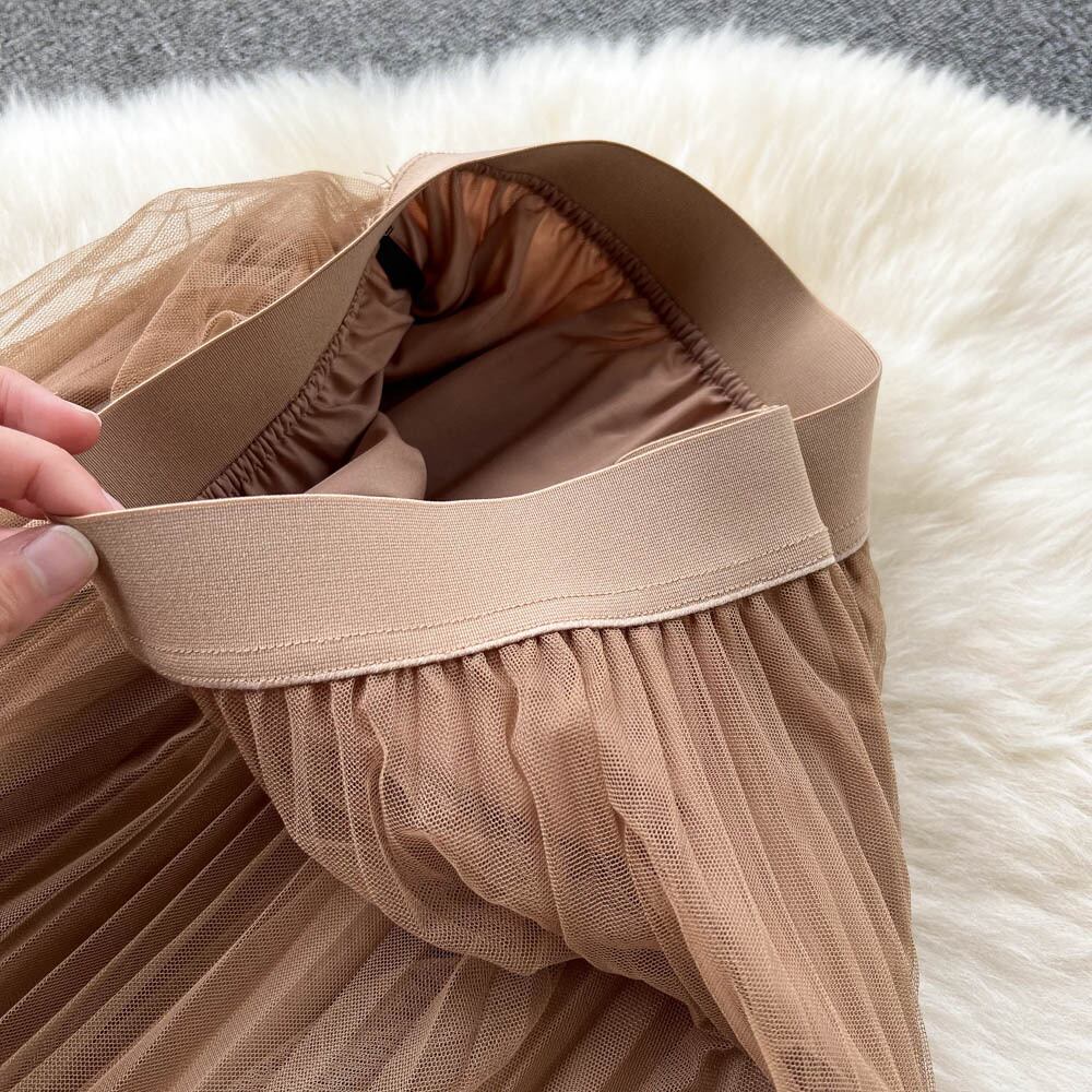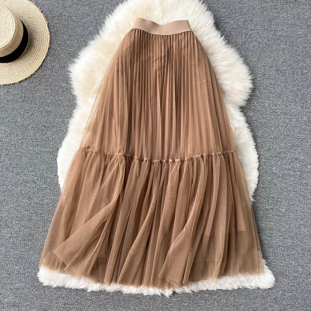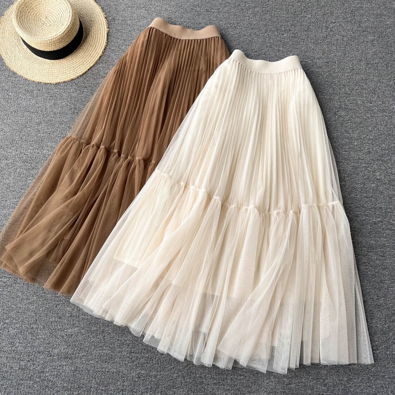 メッシュスカートレディースミドル丈気質ハイウエストマルチレベルフェアリーチュチュスカートオールマッチ細いAラインプリーツスカート ハイウェスト パニエ ペチコート lyxaj41820912145