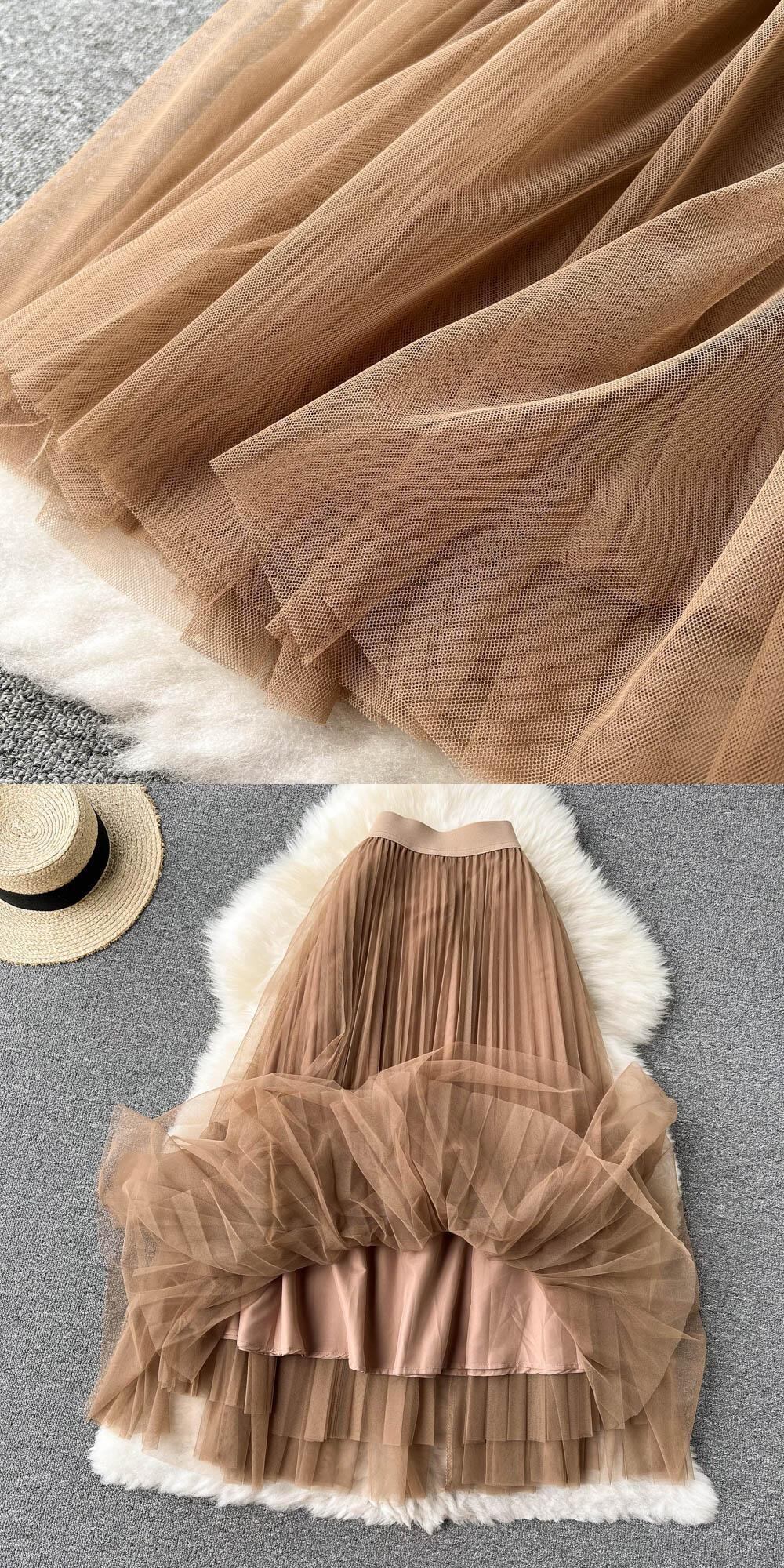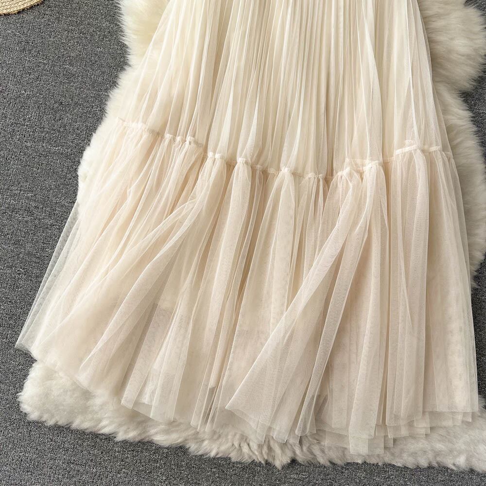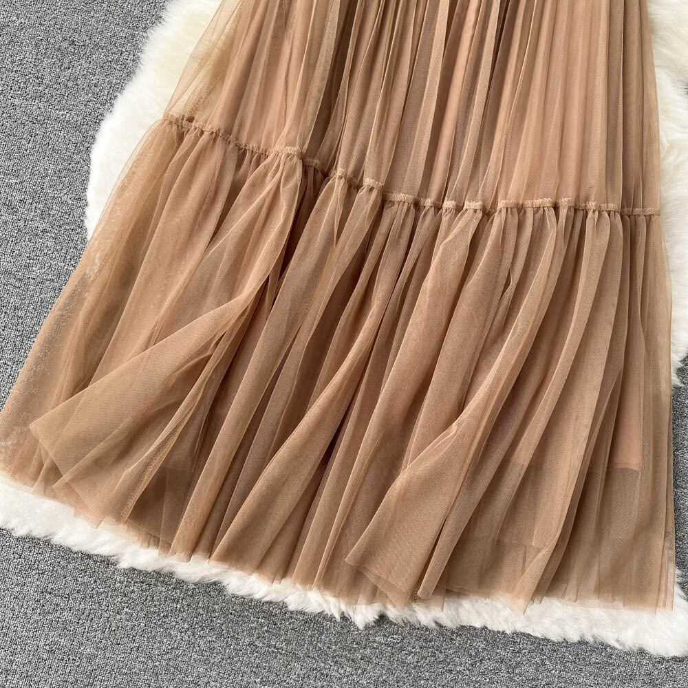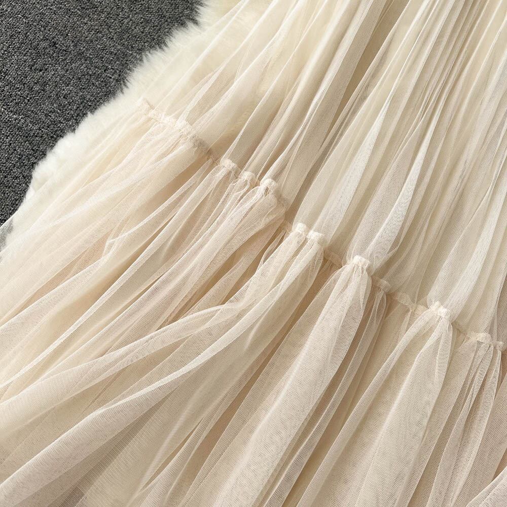 メッシュスカートレディースミドル丈気質ハイウエストマルチレベルフェアリーチュチュスカートオールマッチ細いAラインプリーツスカート ハイウェスト パニエ ペチコート lyxaj41820912145