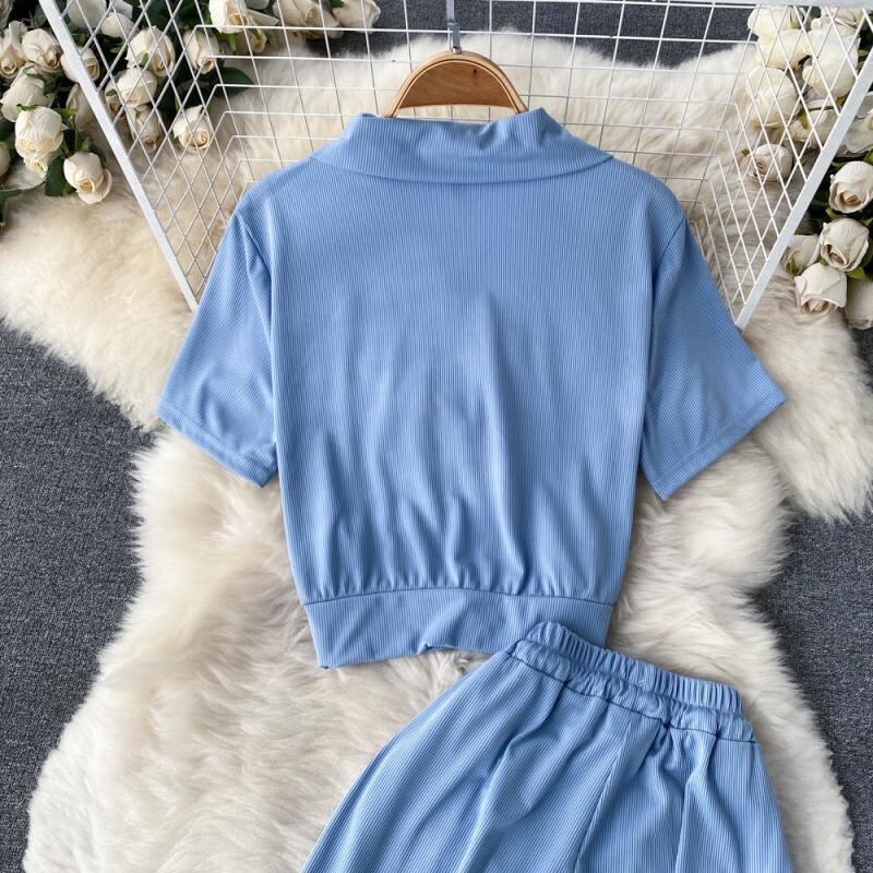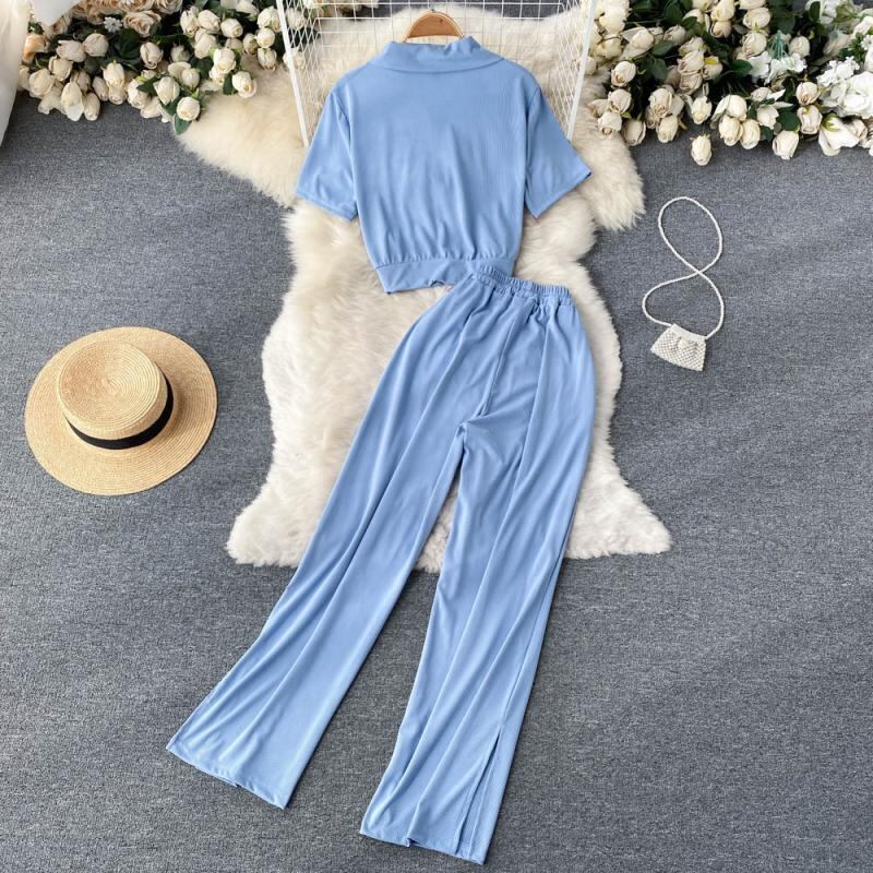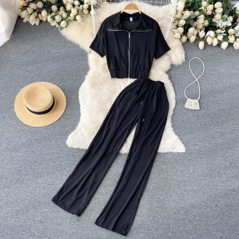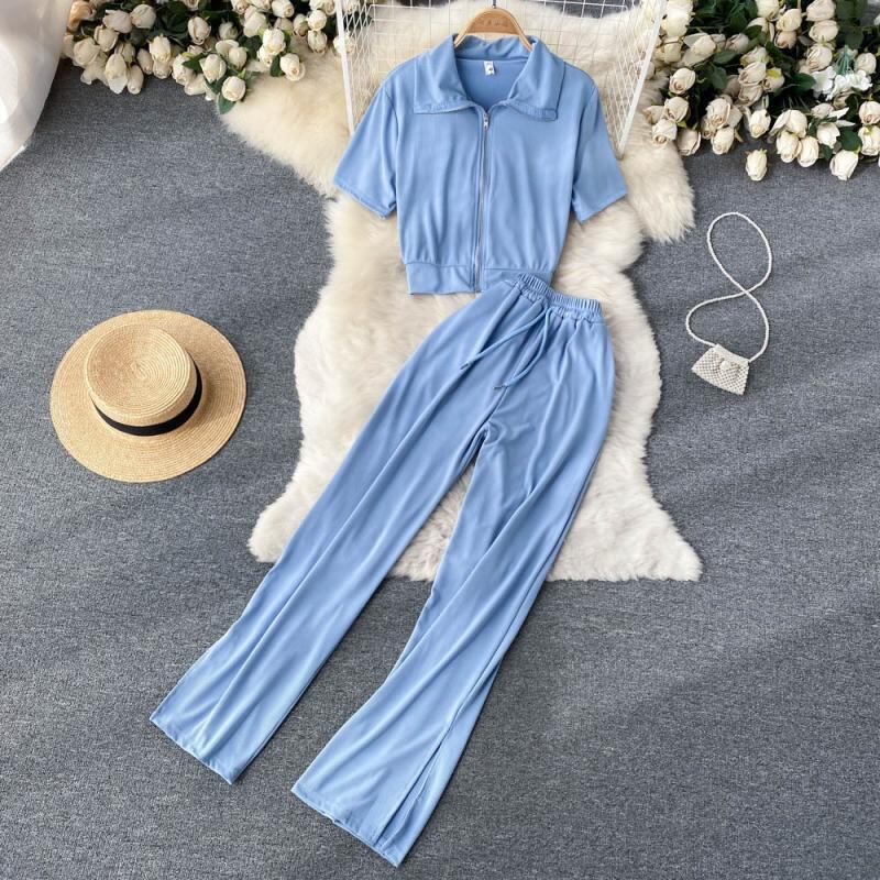 スポーツスーツレディース新作サマードレス2022半袖ジッパーTシャツレディーススプリットカジュアルワイドレッグパンツファッションツーピーススーツ 夏物 lyxaj75297898103