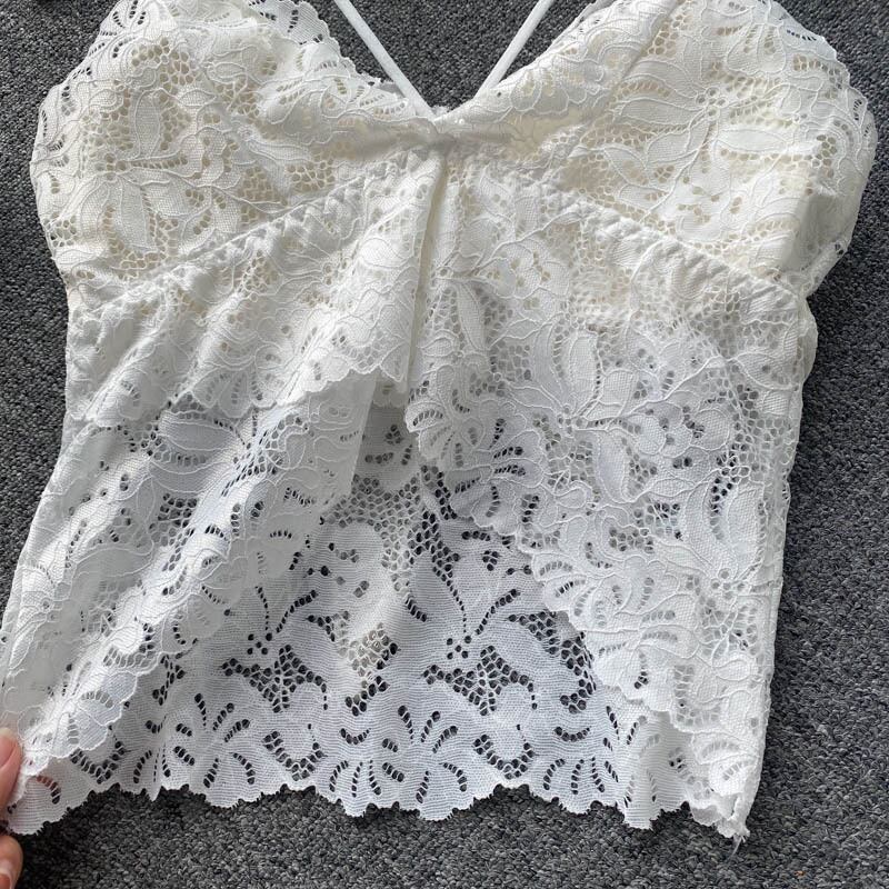 Beautiful back underwear sexy sling V-neck slim short heavy work diamond beaded butterfly sweet lace top women's summer ショート レース 大人ガーリー スウィート キュート カジュアル サマー 夏物 Vネック スリム lyxaj79387121734