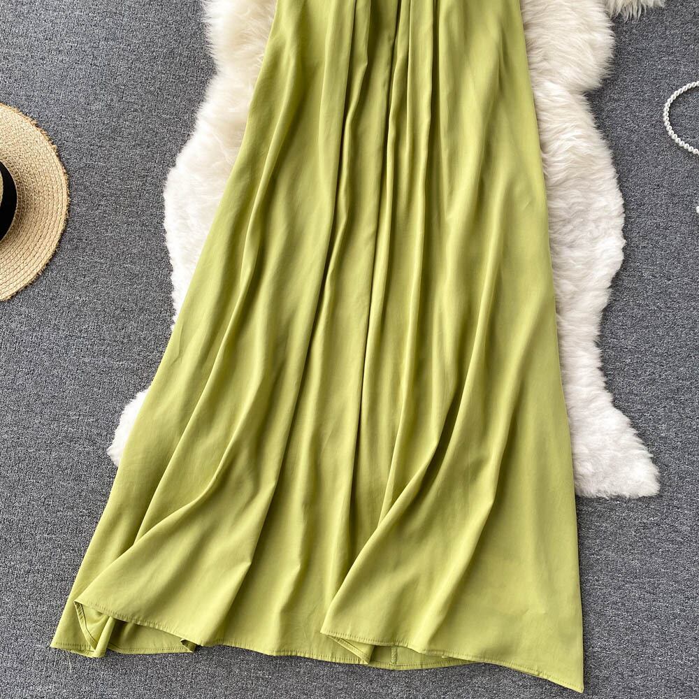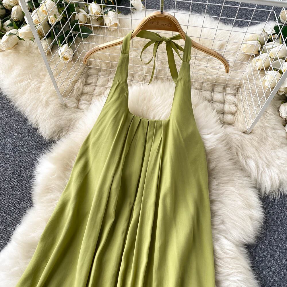 シーサイドホリデースタイル気質ハンギングネックスクエアネック美しいバックノースリーブドレスレディースサマーニュールーズビッグスイングロングスカート 夏物 スクウェア lyxaj49966708036