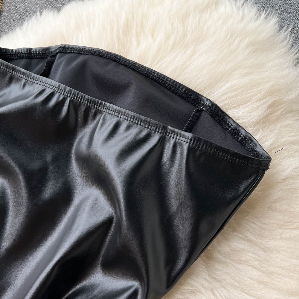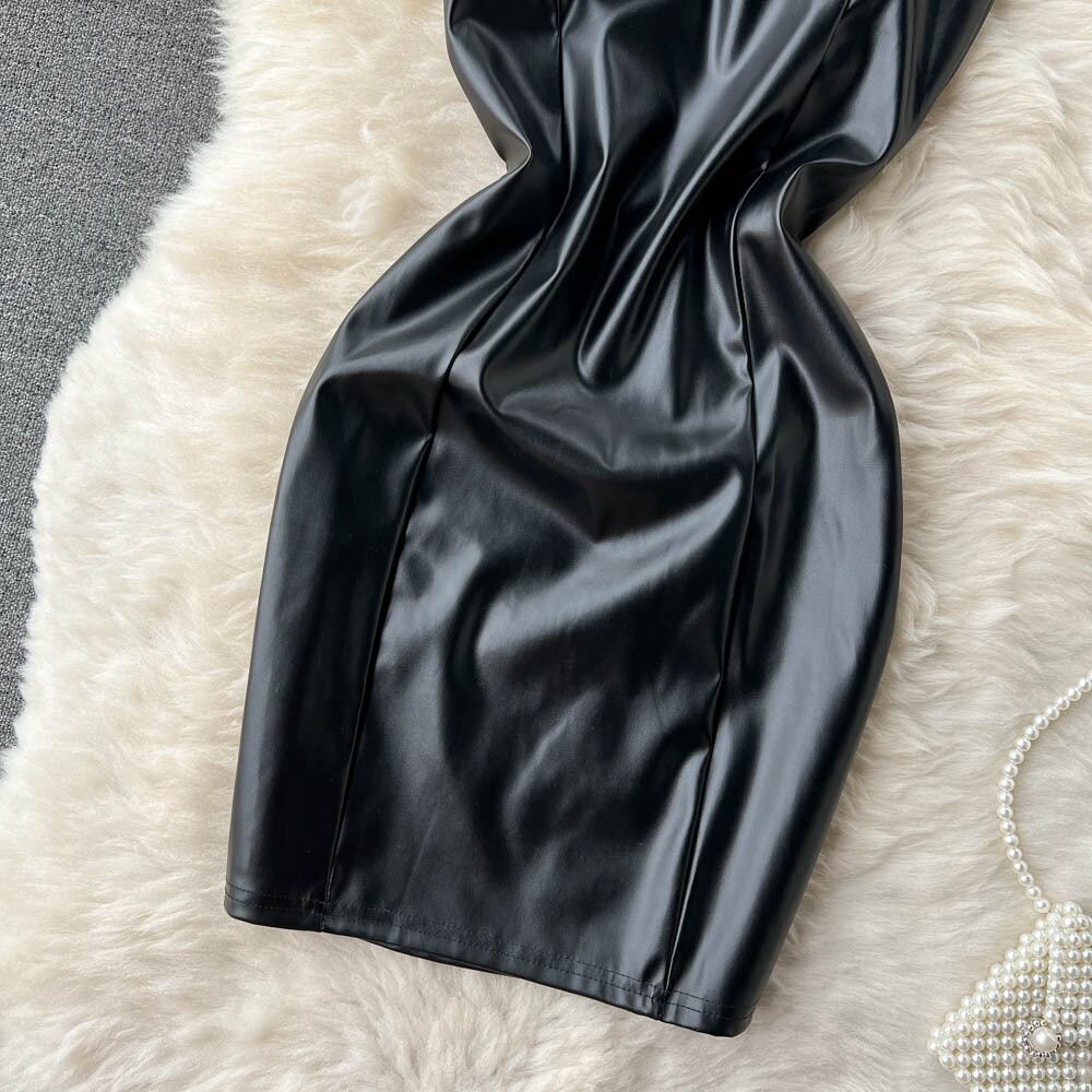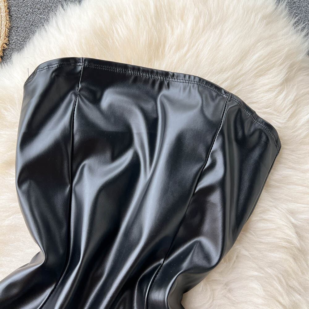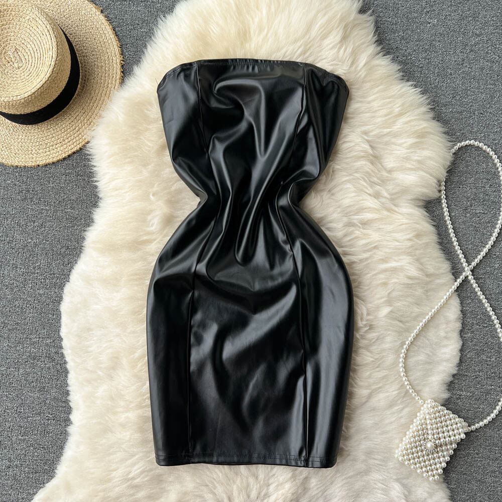 セクシーな女の子のチューブトップPUレザーチューブトップドレス女性の2022年春と夏の新しいタイトなバッグヒップドレストレンディ スプリング 春物 サマー 夏物 lyxaj34519001681