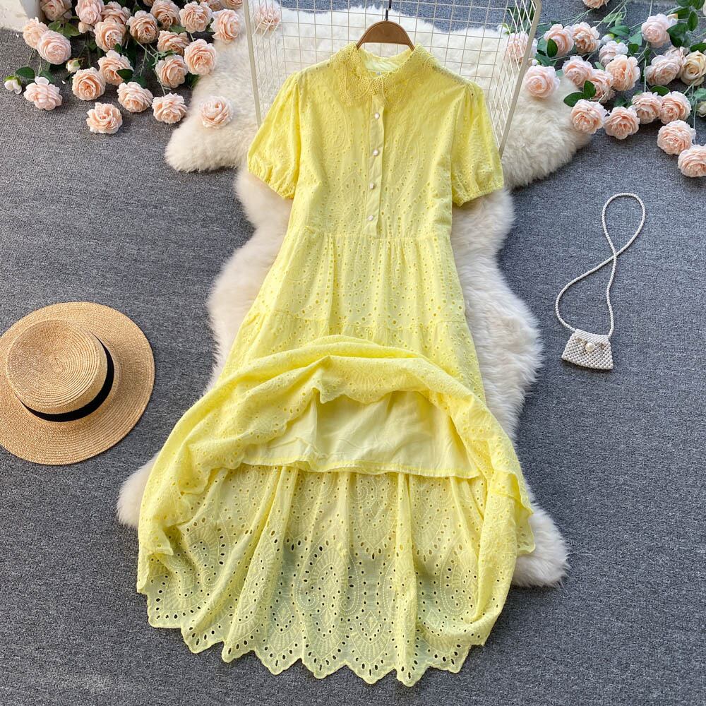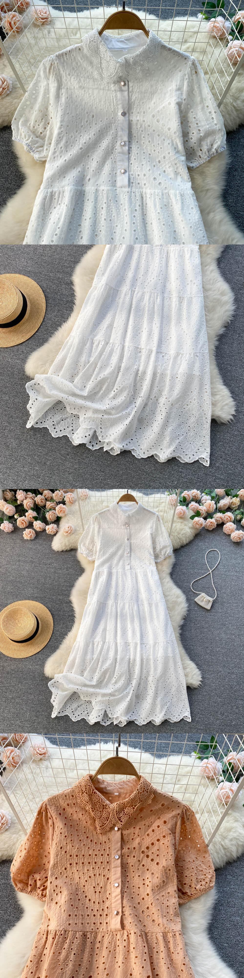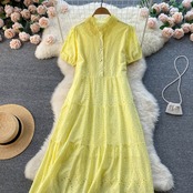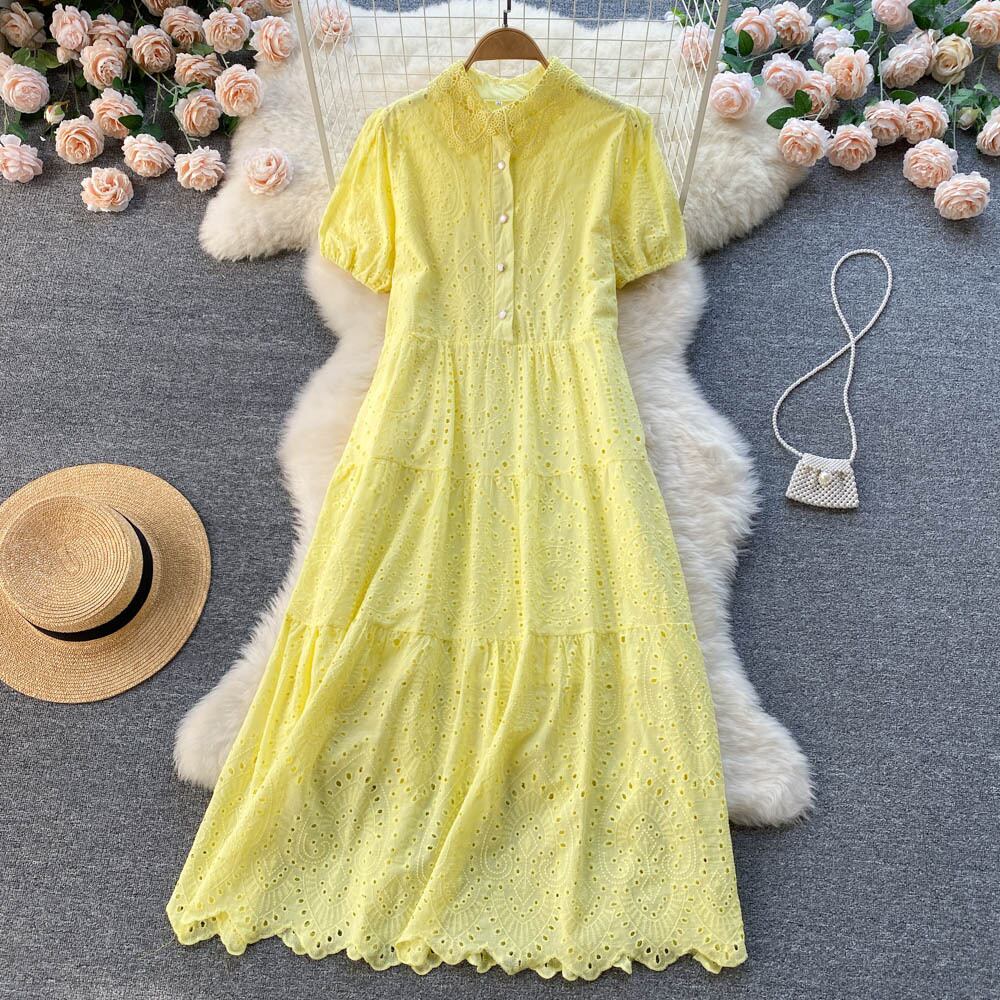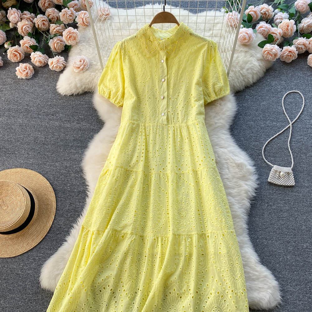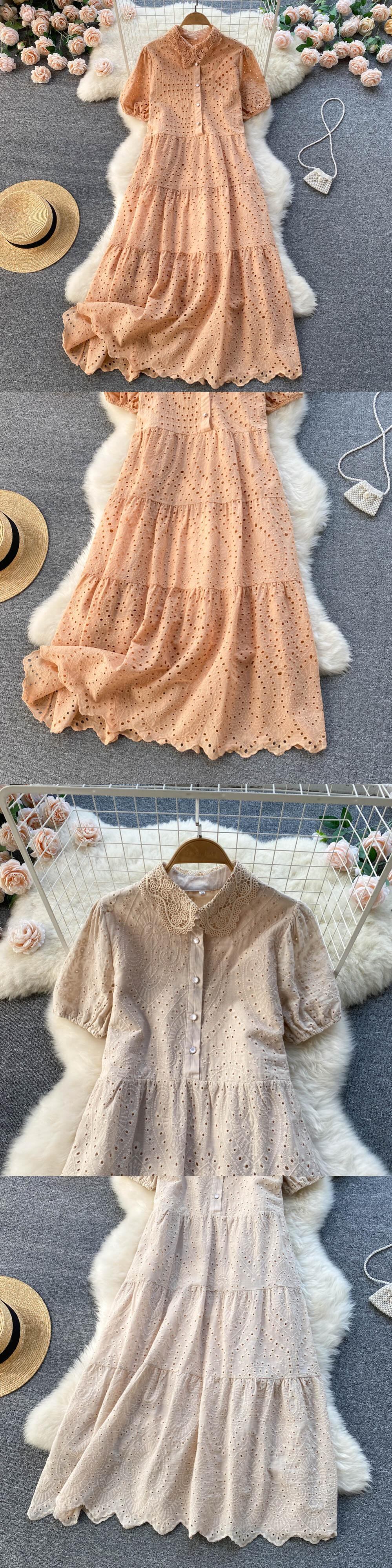 able temperament solid color dress women's 2022 summer new thin and fresh hollow loose loose skirt サマー 夏物 スカート ソリッドカラー lyxaj14532573652