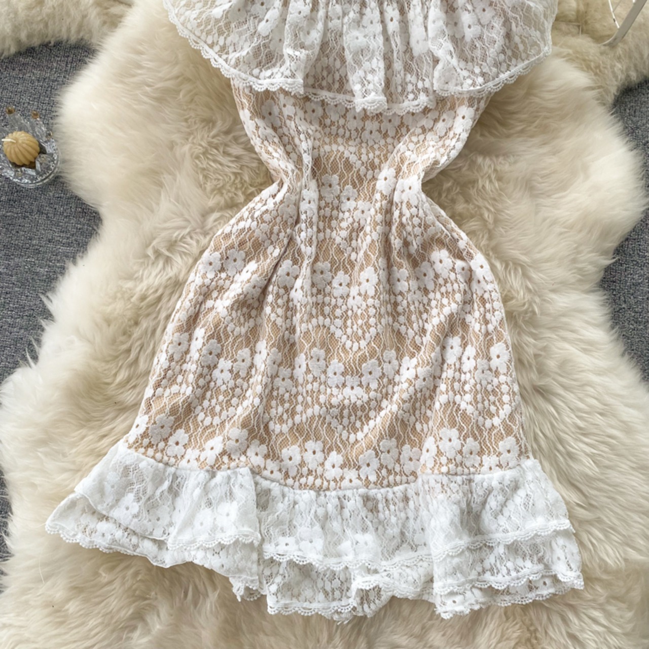 レトロレースレースメッシュ刺繡スクエアネックジャンプスーツ半袖ドレス女性の甘い気質妖精フィッシュテールスカート 刺繍 大人ガーリー スウィート キュート カジュアル スクウェア lyxaj4363848322