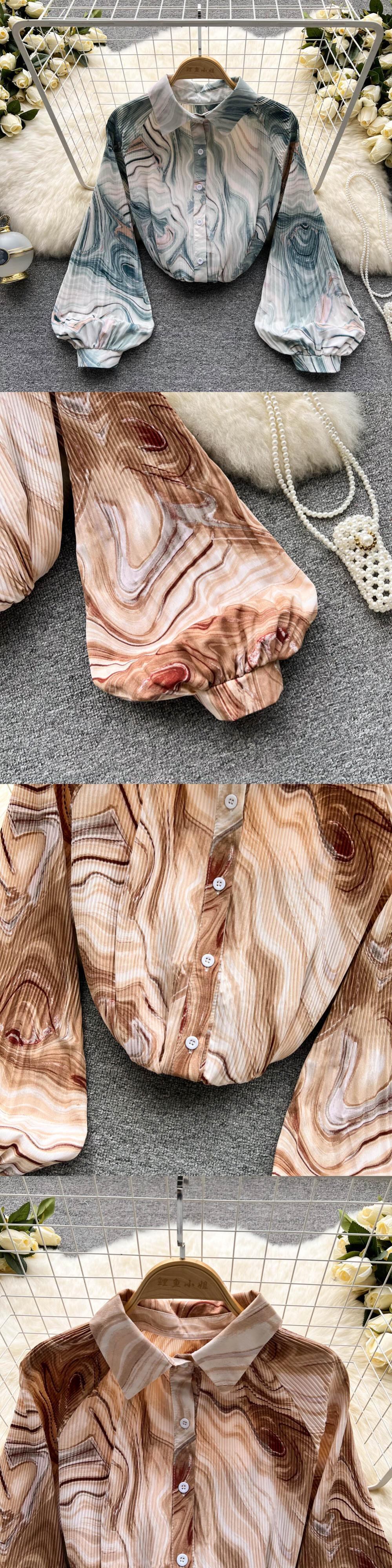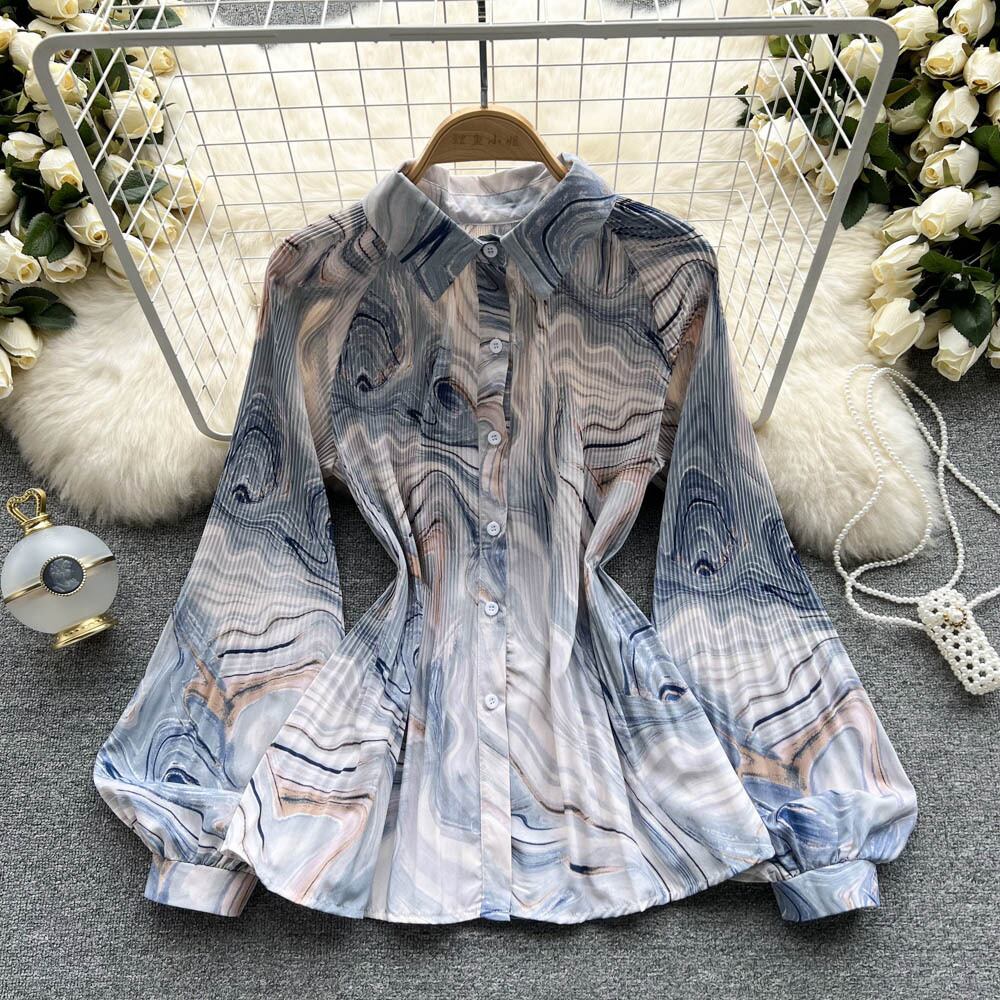 2022年春の新しい香港スタイルの絞り染めシックなレディースプリントシャツレディースシフォントップスデザインニッチシャツ スプリング 春物 lyxaj74797337312